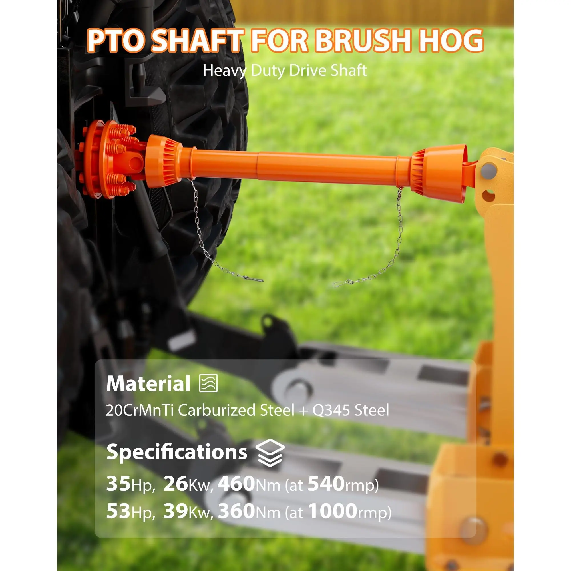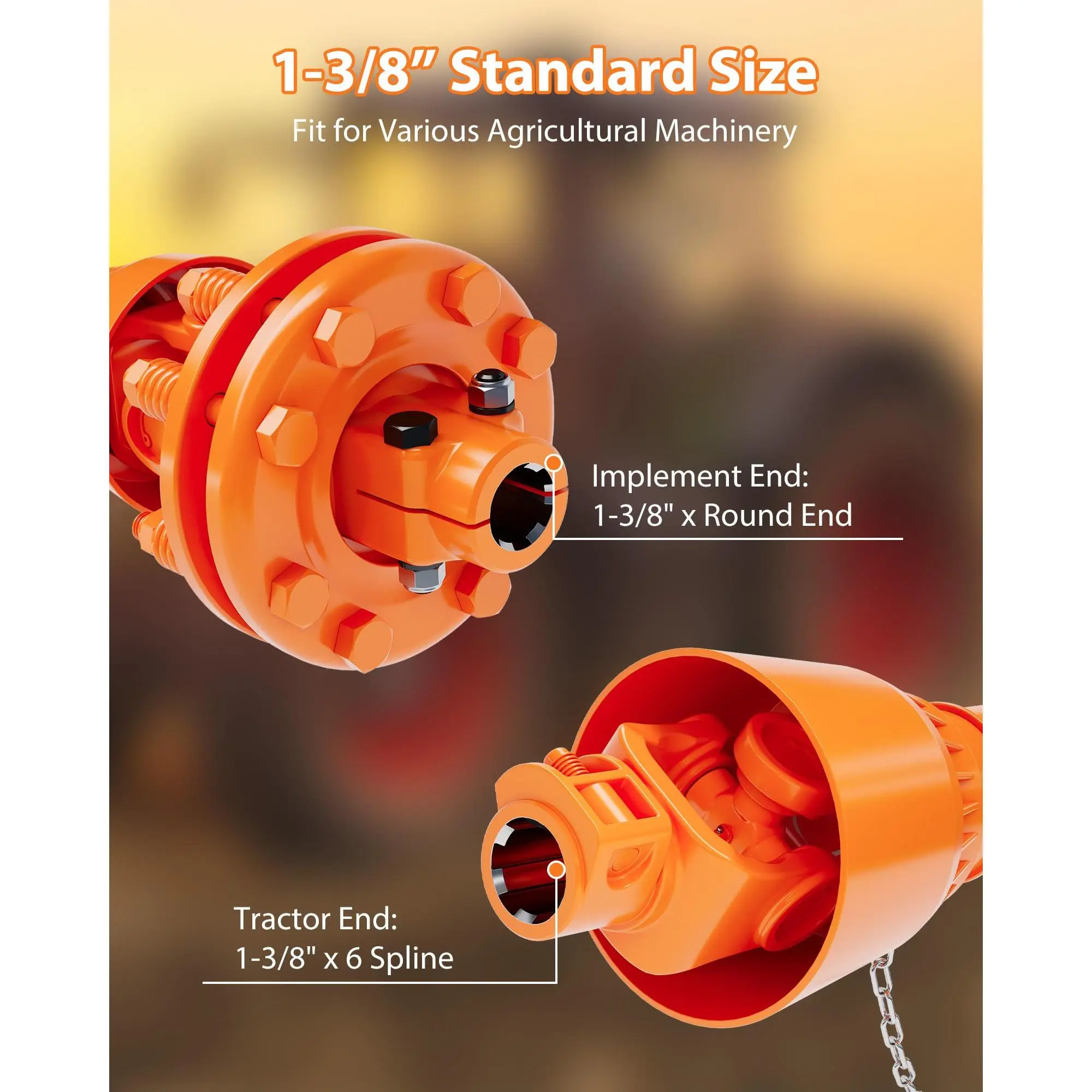 【Universal Compatibility】: Featuring 6 spline ends (1-3/8 in x 6 Spline on both tractor and implement ends), our brush hog PTO shaft seamlessly matches implements and tractors of the same size and type, delivering exceptional driving force for your machinery.