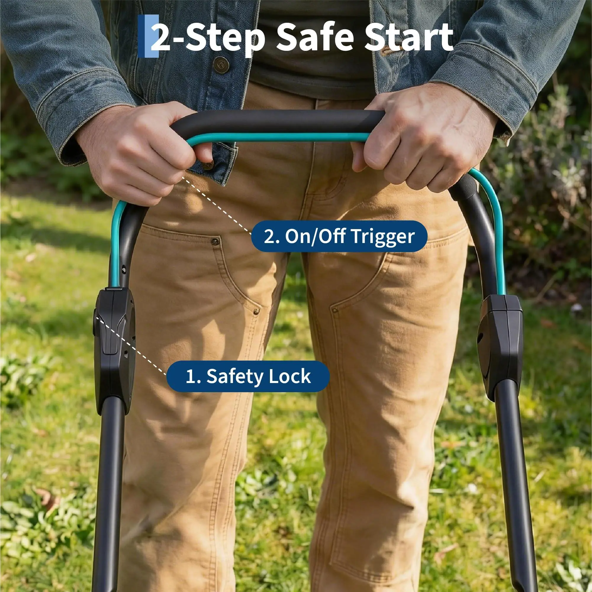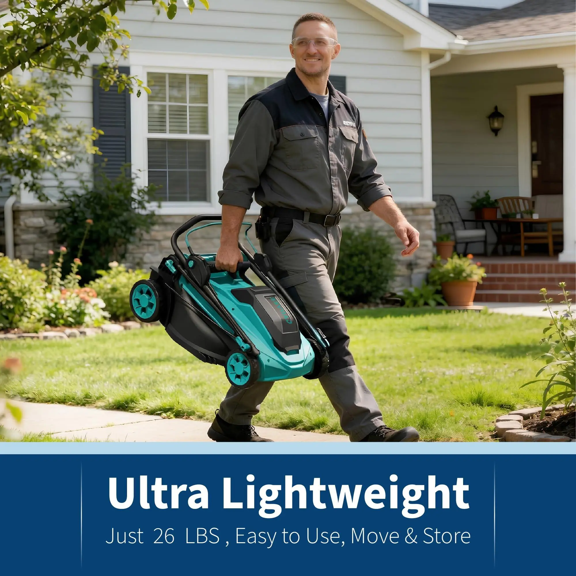 LIGHTWEIGHT & COMPACT DESIGN: Weighing only 26 lbs., this mower is easy to maneuver on slopes and around tight spaces. The compact body fits narrow paths, and the foldable handle allows for convenient storage.