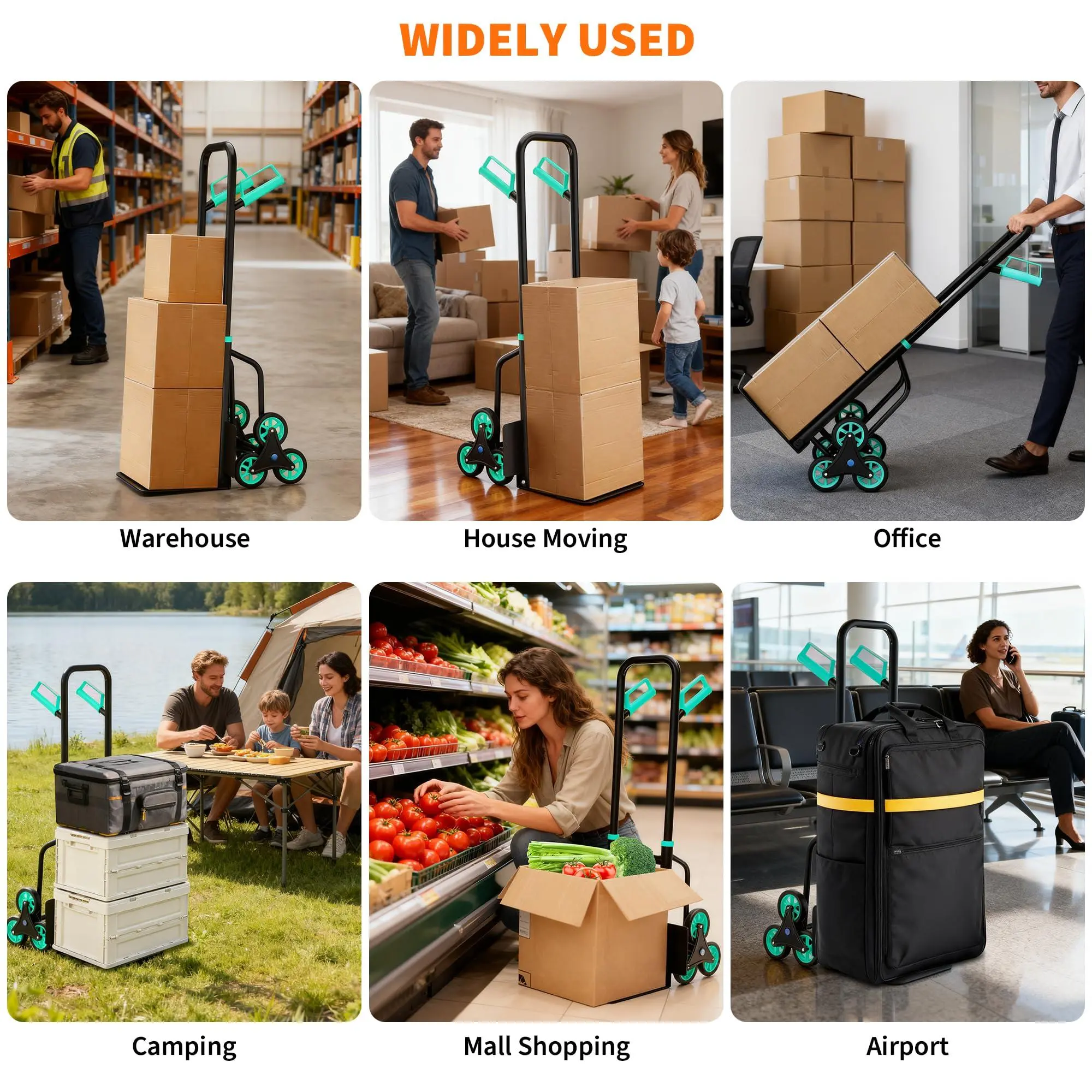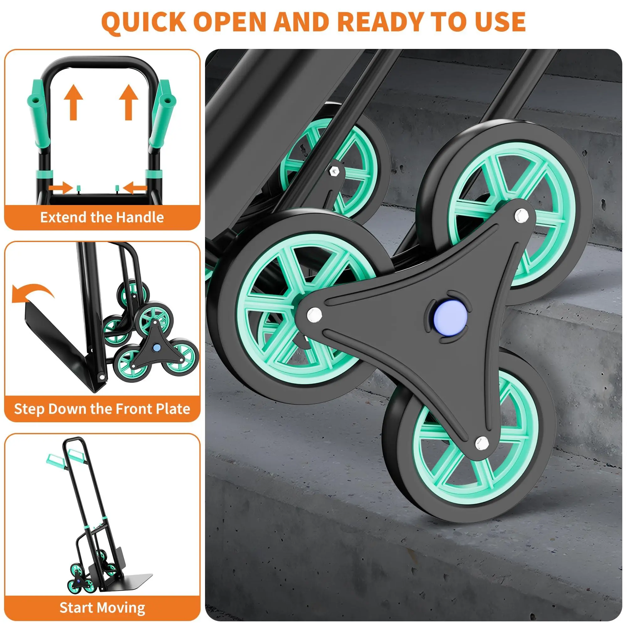 Multi-Purpose Utility: Functions as a stair climbing hand truck, appliance dolly, and heavy duty hand truck, perfect for various tasks including moving heavy loads up and down stairs.