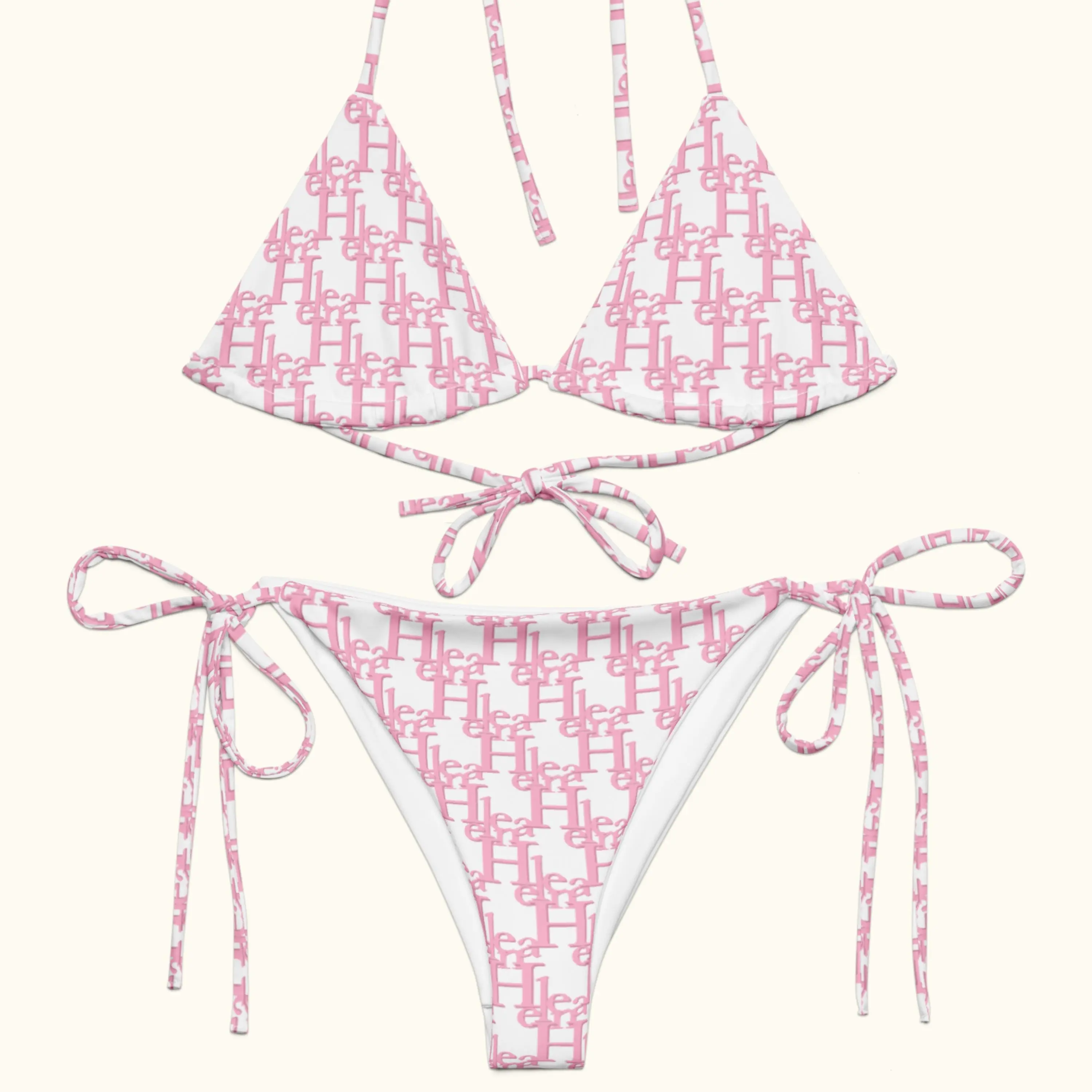 Classic triangle bikini top paired with matching string-tie bottoms