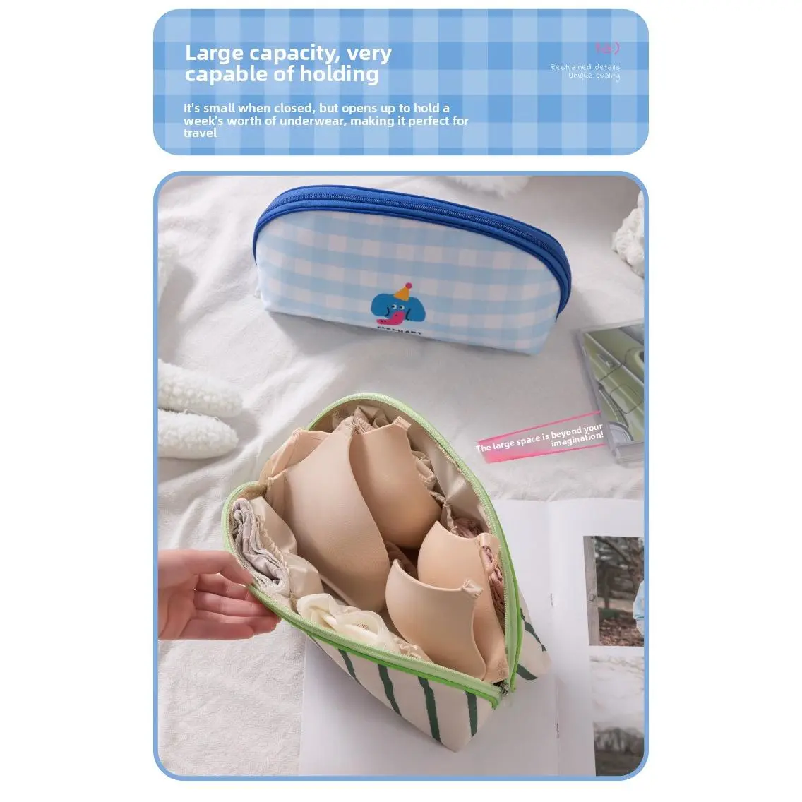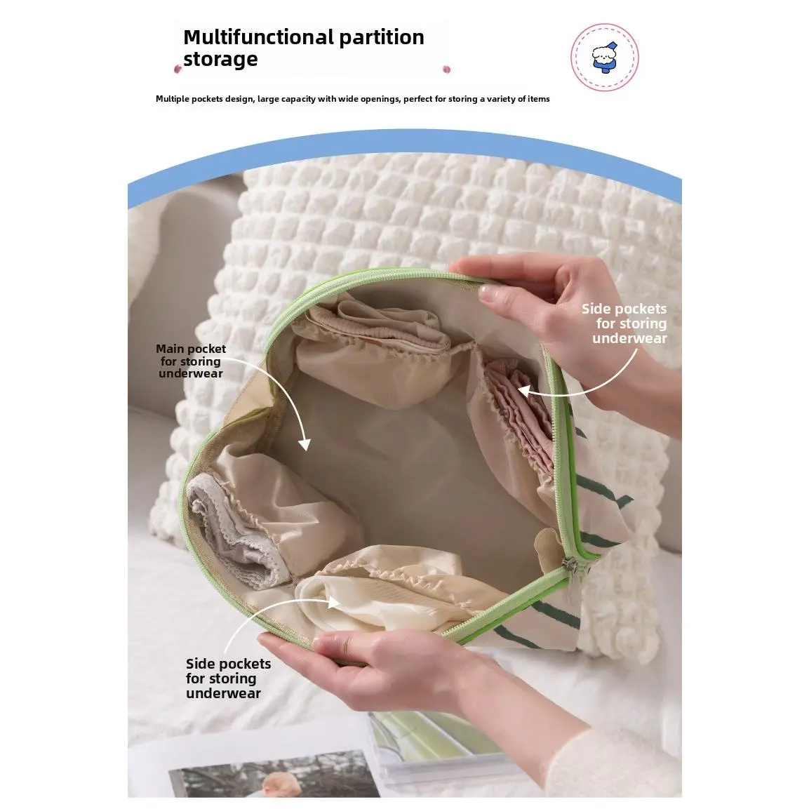 (enough for a week’s use).It comes with divided pockets: a main compartment for bras, and side elastic pockets for panties, socks, or small accessories, keeping everything sorted and protected from deformation.