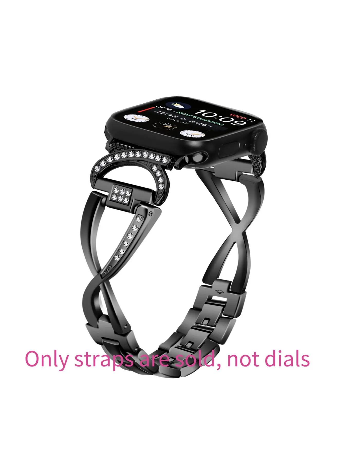 Diamond-encrusted metal watch strap compatible with Apple Watch, suitable for Apple Watch Series 1 to 11 smartwatches