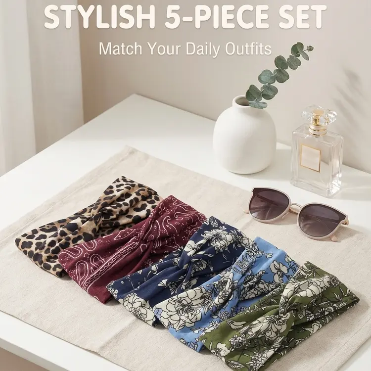 5pcs Soft Stretch Wide Headbands for Women Non-Slip Elastic Bands in Assorted Colors for Yoga, Running & Sports, Head Bands Hair Accessories