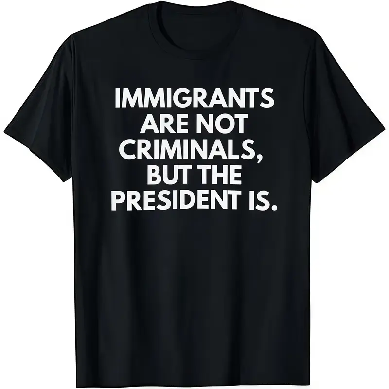 5. Immigrants Are Not Criminals But The President Is Funny T-Shirt Cotton Crew Neck Short Sleeve Casual Classic Graphic Tee for Men Comfortable Versatile Everyday Wear