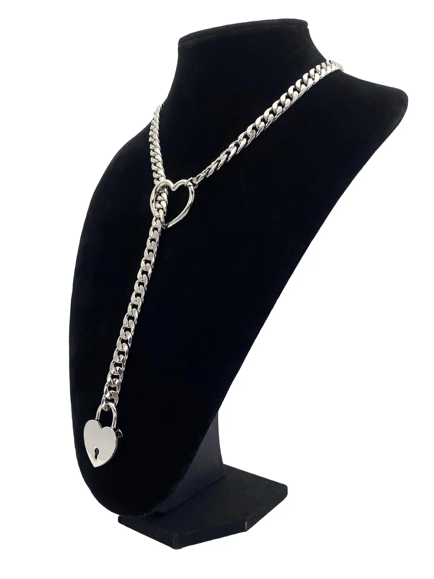 Unique lariat style—no clasp needed. The chain slips through the heart O-ring so you can wear it tight like a choker or loose for a longer drop.