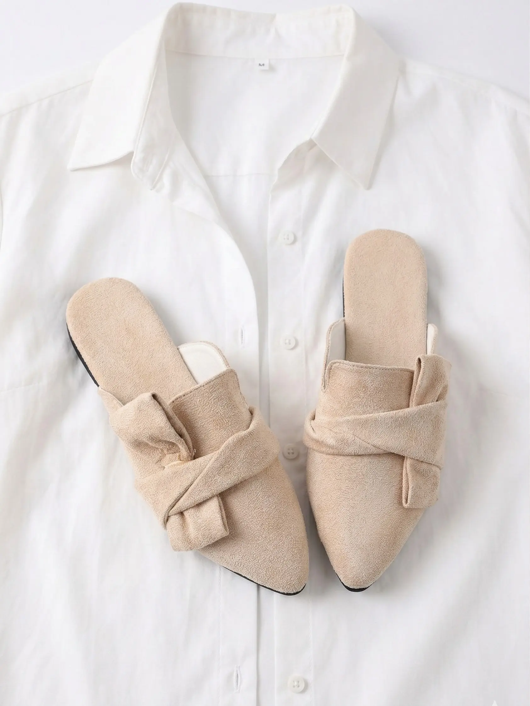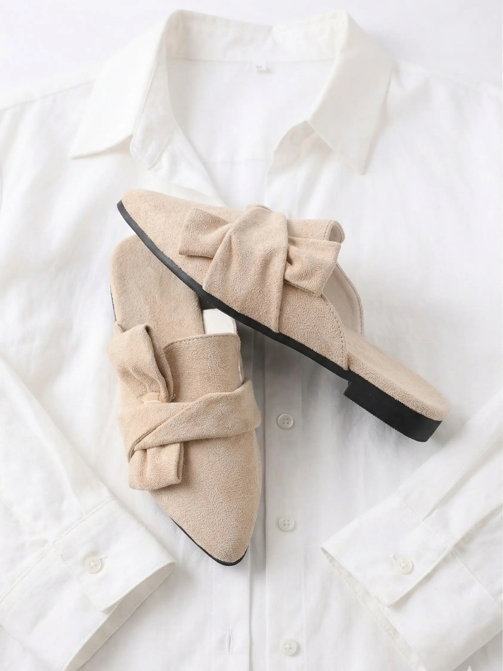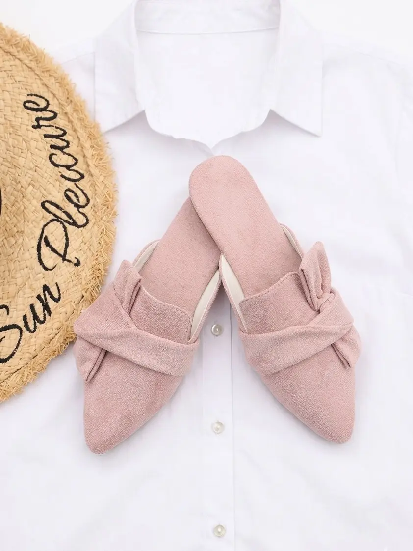 Upgrade Your Daily Style! Elegant Suede Bow Mules | Pointed Toe Flat Slip-On Shoes