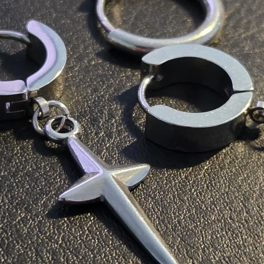 The cross lover set includes three silver hoop earrings designed for a modern, minimal and edgy aesthetic. It features one simple hoop, one hoop with a small cross pendant, and one hoop with a larger layered cross design. Lightweight, comfortable and perfect for daily wear, streetwear outfits or stacking with other accessories. A bold yet clean accessory set that adds presence to any style.