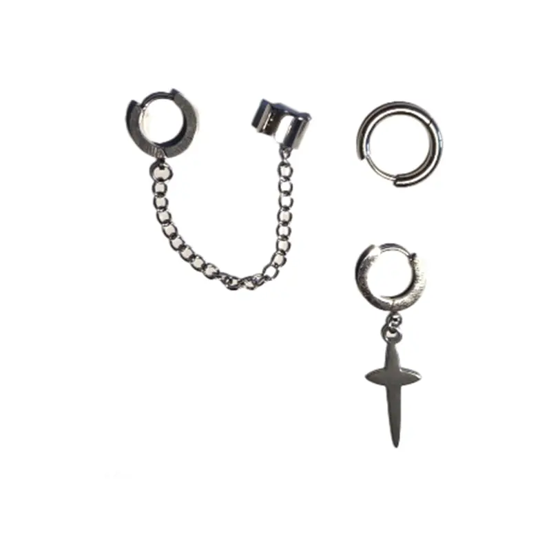 1 minimal hoop + 2 cross‑pendant hoops