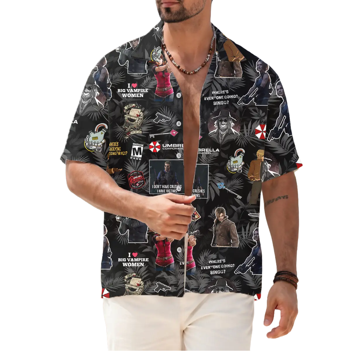 Resident Evil Leon Character Quotes Hawaiian Shirt, Survival Horror Gaming Apparel For Fans, Summer Vacation Wear, Geeky Gamer Gift Idea | 080426.R3078.ID00