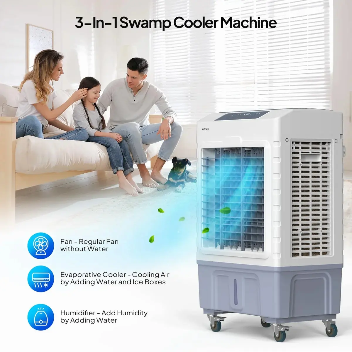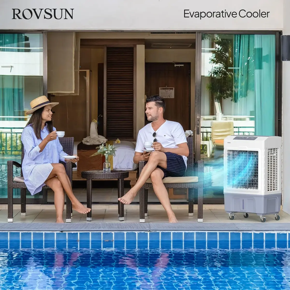 5. Seamless Portability for Any Environment: Its lightweight construction and 4 smooth-rolling wheels allow you to slide the unit effortlessly across various floor types to any room, even with a filled water tank. It is highly adaptable for both indoor and outdoor settings, including homes, offices, garages, yards, and patios. For peak performance during intense summer heat, utilizing our evaporative cooler in conjunction with a traditional air conditioner is recommended.