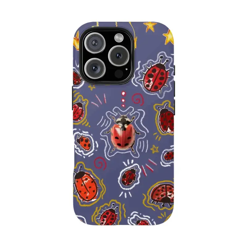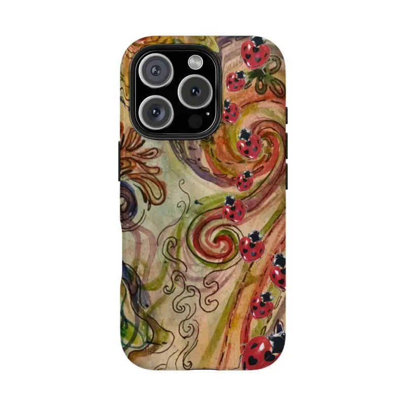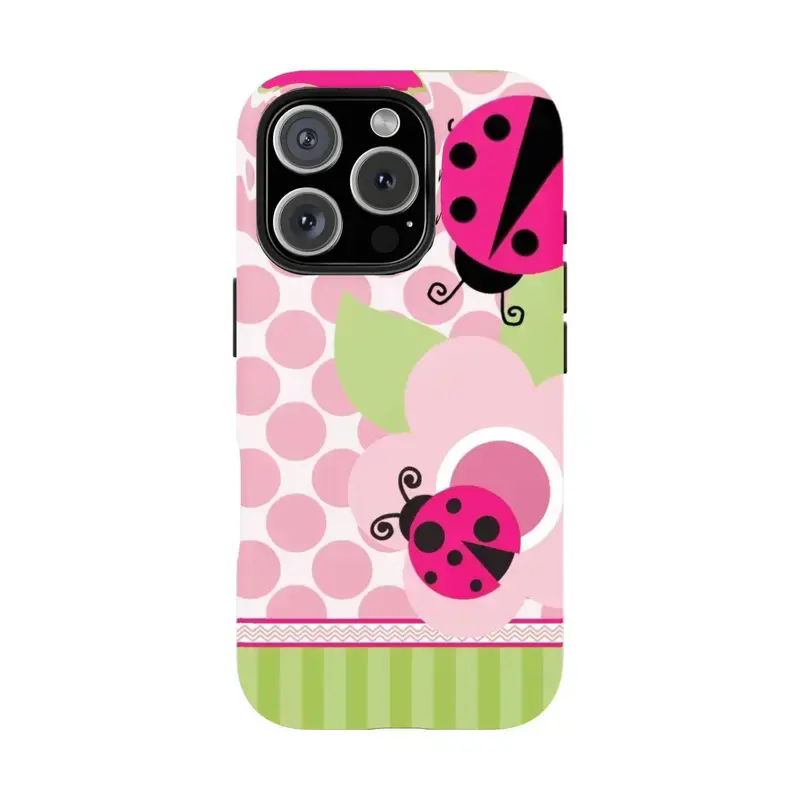 Whimsical Pink Ladybug Phone Case Cute Cottagecore Aesthetic – Adorable Ladybird Patchwork Polka Dot Floral Design, Kawaii Vintage Garden Cartoon Art Cute Case for iPhone 11–17, Perfect Gift for Her & Him