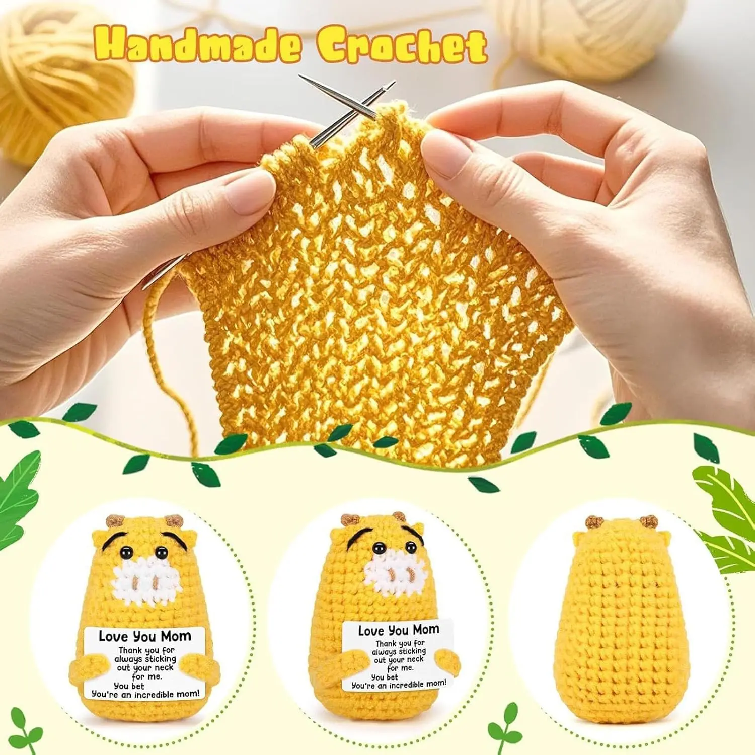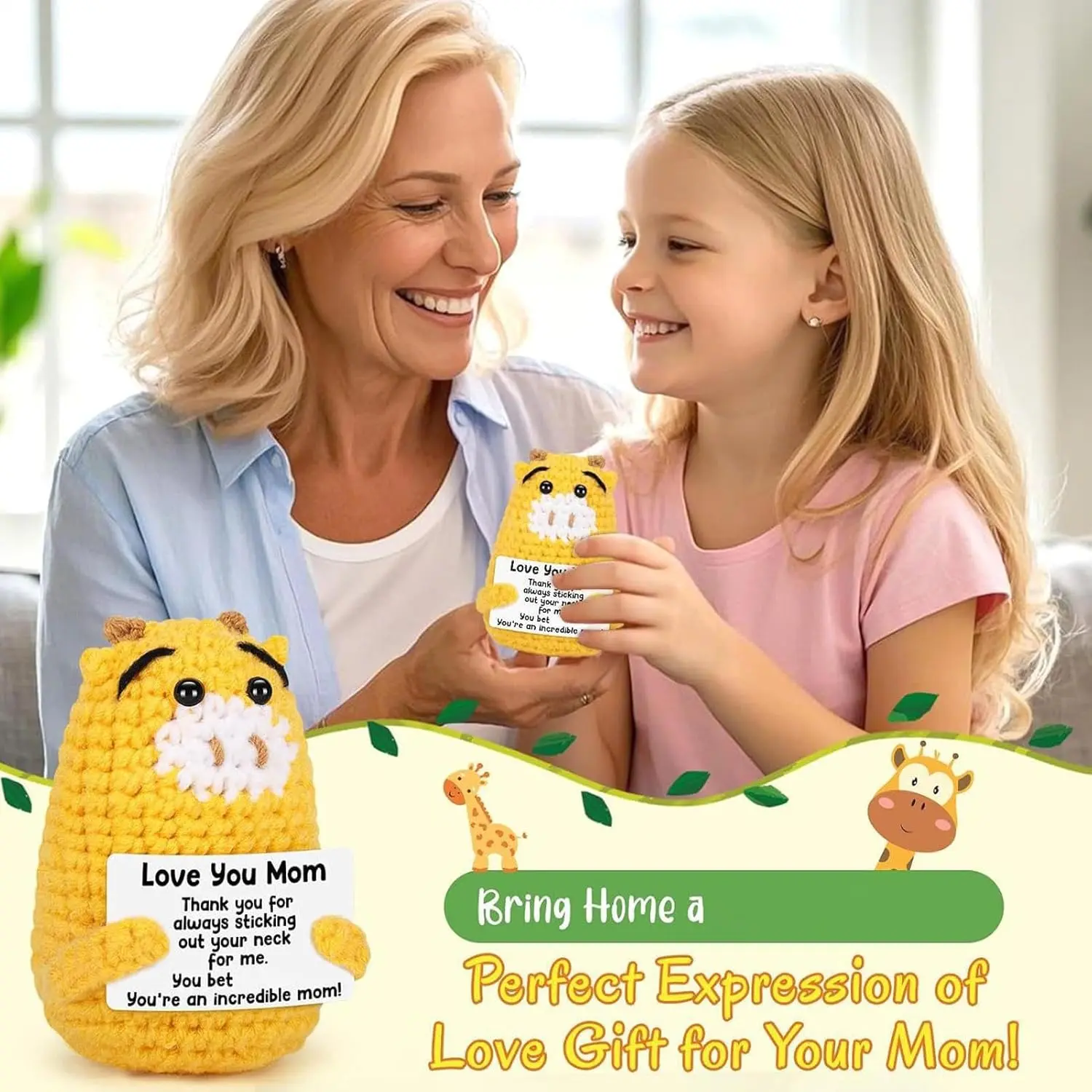 Adorable inspirational crochet giraffe with positive message card! Sweet emotional support animal for kids, adults, coworkers and friends, great for appreciation and encouragement. Soft, charming and meaningful, alovely little gift to lift spirits anytime
