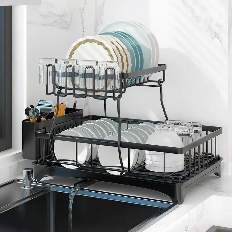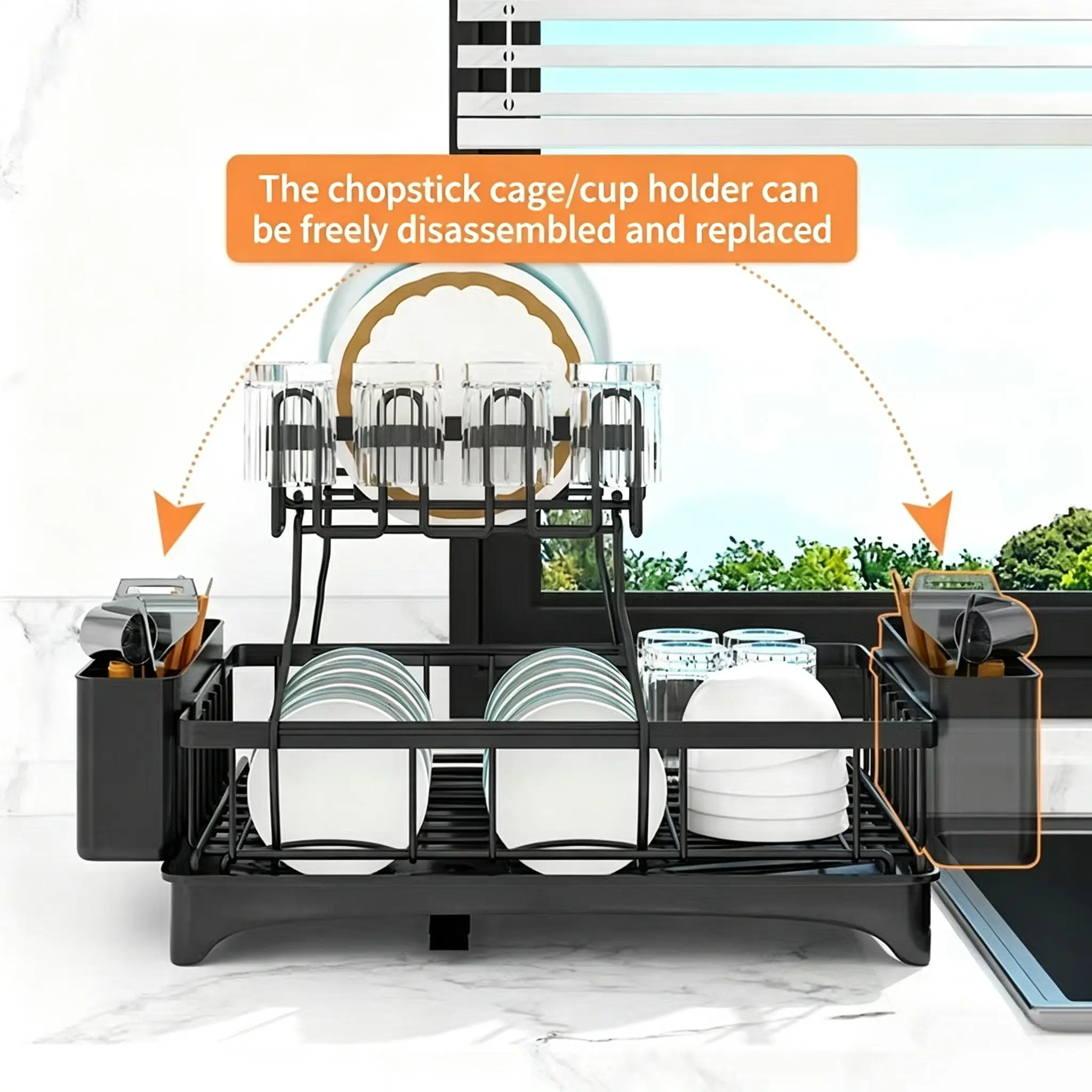 Dish dryer Rack with Utensil Holder & Cutting drain Board Holder, Rustproof Dish Drainer for Kitchen space-saving compact storage