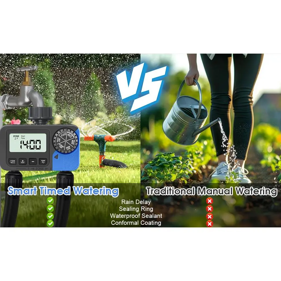 Sprinkler Timer Water Timer for Garden Hose, Sprinkler Timers 2 Zone, Smart Programmable Watering Timer with Auto/Manual/Rain Delay Modes