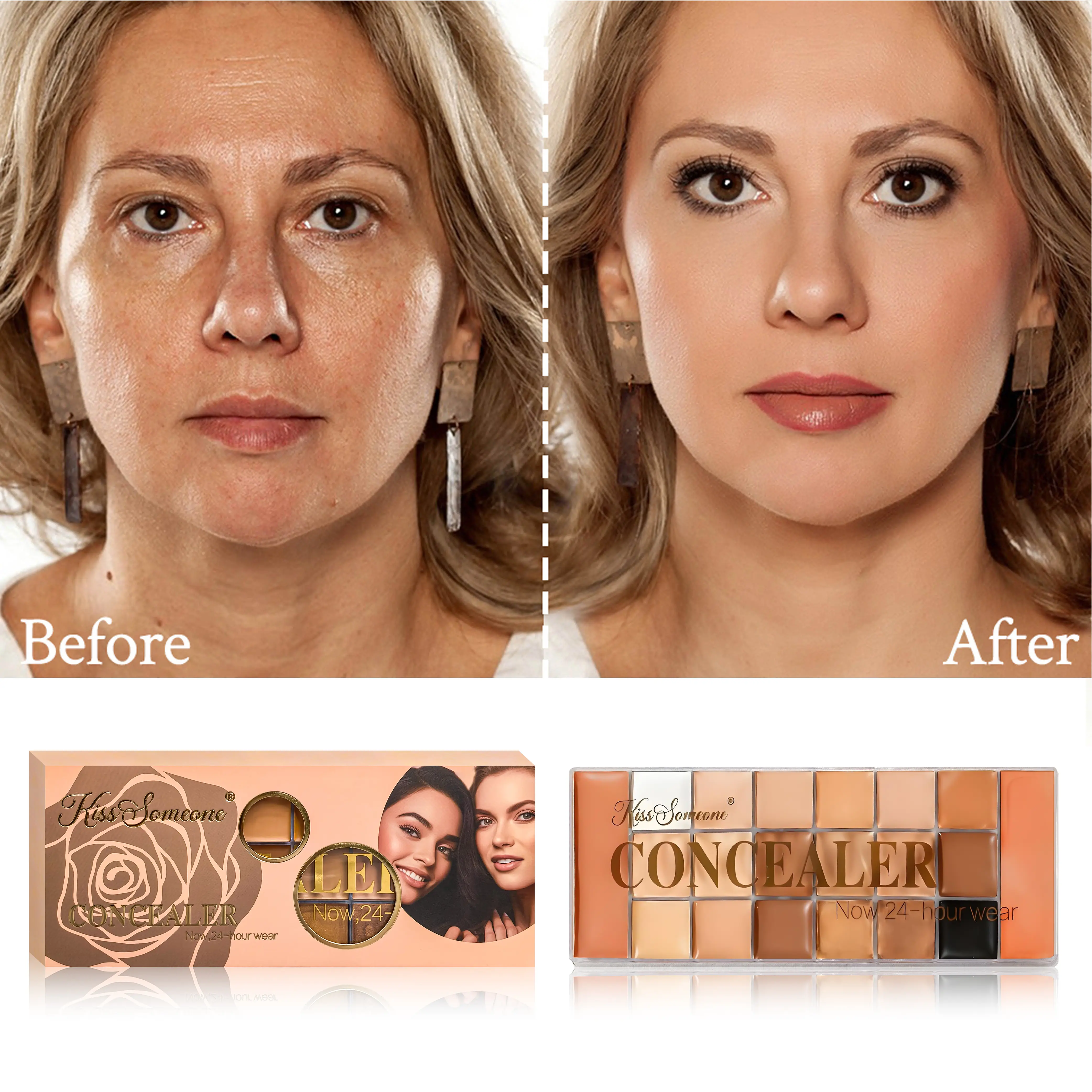 Achieve a flawless, camera-ready look with our all-in-one concealer palette. Designed for professional makeup artists and beauty enthusiasts, this palette offers a rich assortment of 24 shades, spanning high-coverage concealers to contour shades and color correctors.