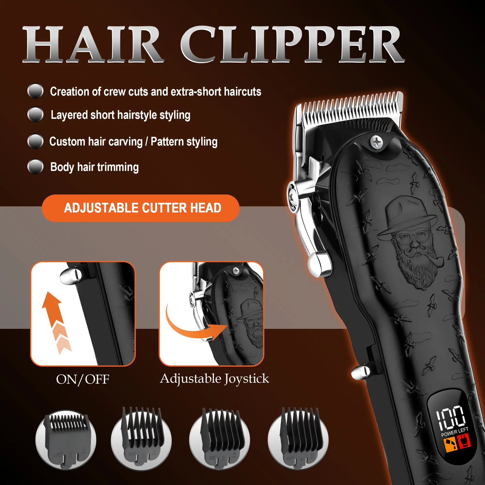This premium 3-in-1 grooming set combines a powerful hair clipper with a clear LCD display for smooth, precise haircuts and fades, a precision detail trimmer with RPM & battery display for sharp edges and beard shaping, and a close-cut electric shaver for a clean, smooth finish.