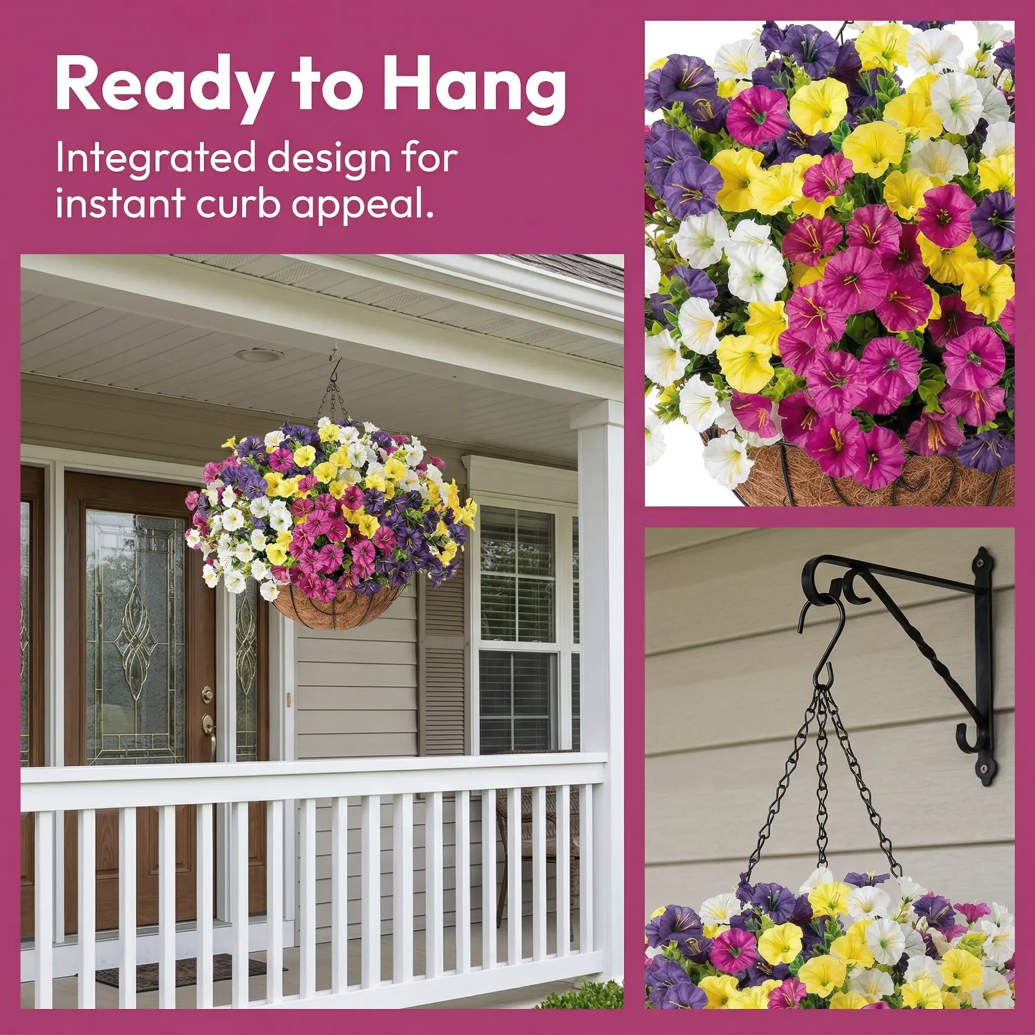 Ultra-Realistic Appearance: Lush, dense petals and lifelike green foliage create a full, natural look that adds instant curb appeal.