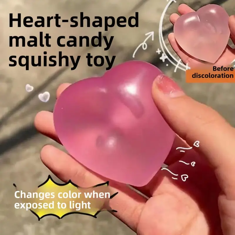 Heart Squishy Stress Relief Toy, Photochromic Maltose Squishy, Moldable Slow Rebound, Anxiety Relief Fidget Squeeze Toy