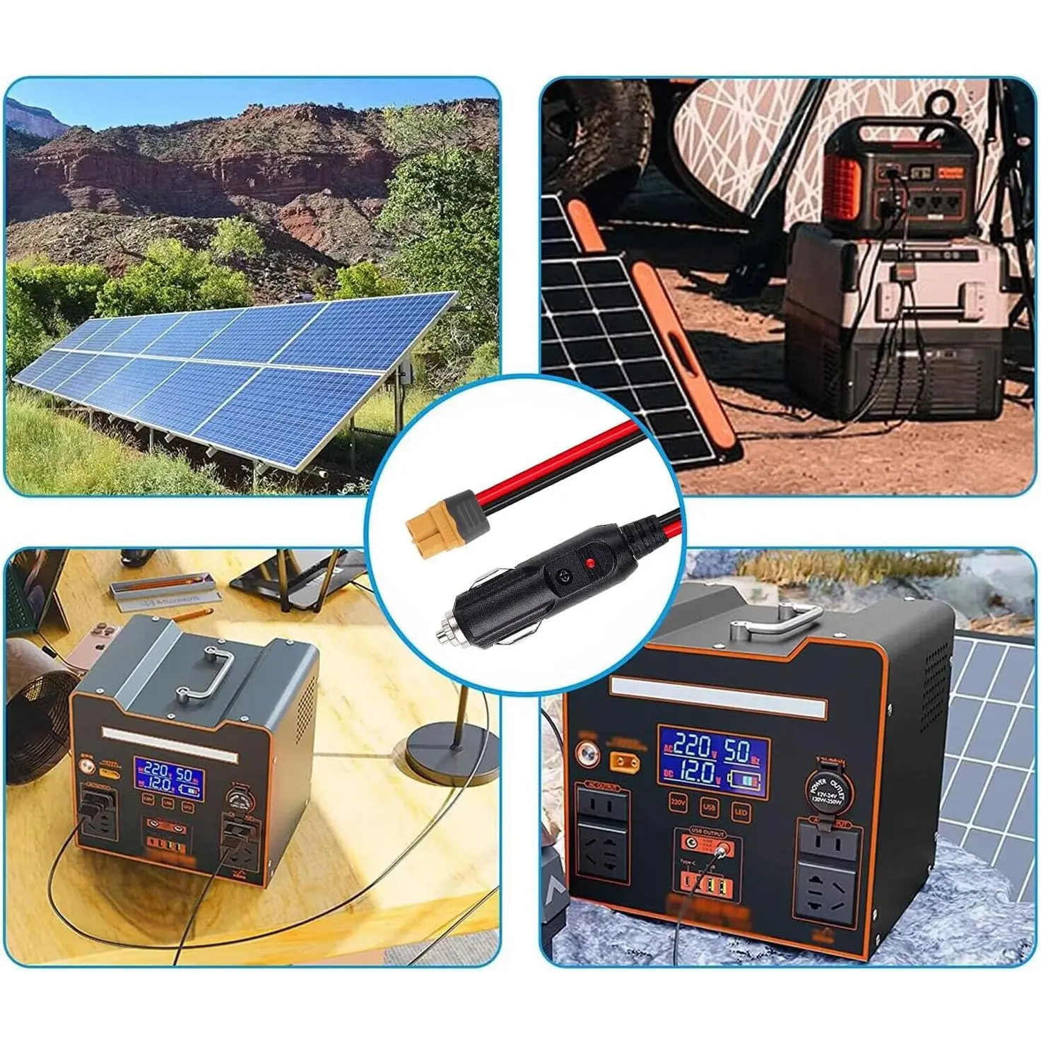 XT60 Extension Cable XT60 Female to Cigarette Lighter Male Plug Extension Cable 3.3Feet 12AWG XT60 Adpter Cable Compatible with Panel RV Station Generator
