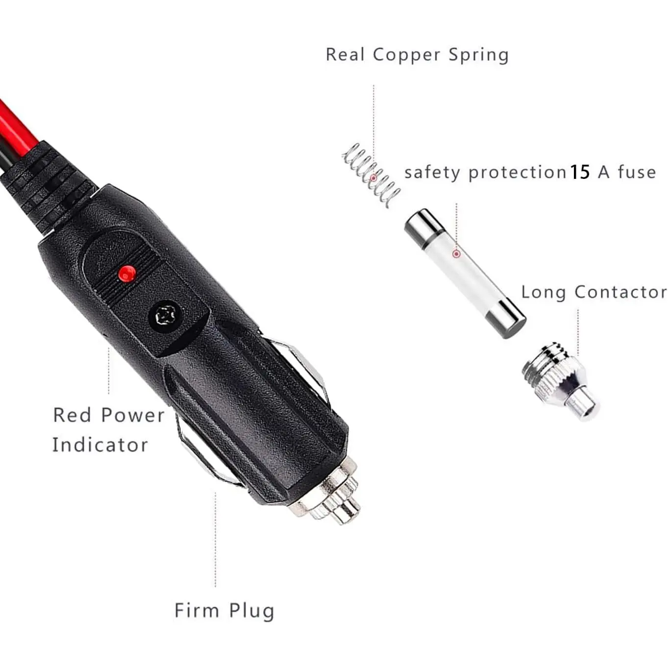 The cable is made of pure copper 12 AWG wire,105 Degree heat resistance,flexible,waterproof,antifreeze,high temperature and wear-resistant.Length(1m/3.3ft) Color:(Red-Black)Connectors 1 : XT60 Female jack.Connectors 2 : Cigarette lighter male jack (With Fuse)(Note:With LED lights) .Application: Widely used on Model Planes, Model Cars, Model Ships, Lamps, Household Appliances, Electric Heating Solar Panel RV Boat.3.3 feet Male Plug Cigarette Lighter Adapter,12-24V Car Cigarette Lighter Plug Male to XT60 Female Socket Connector Plug Adaptor .you to power a wide variety of devices comfortably.Notes on charging: 1.Make sure your car generator is running normally when charging, please do not start or stop the car generator.2.Stop charging and unplug the adapter before starting or shutting down the engine.(The main protection against damage to charging equipment)