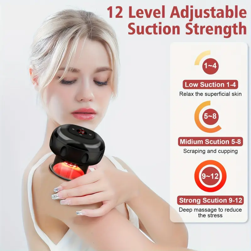 USB Charging Electric Cupping Machine Sand Scraper, 12 Levels of Temperature And Suction Smart Vacuum for Neck, Shoulder And Back, Suction Cup. Suitable for Home Use And Self-care.
