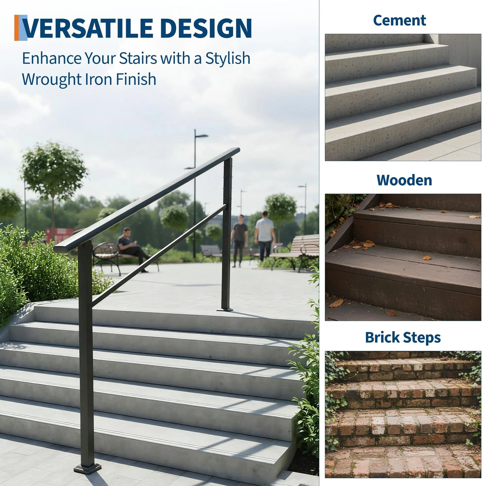 Adjustable from 0° to 45° for Flexible Installation - The 6 step stair handrail can be adjusted from 0 to 45 degrees, allowing it to perfectly fit the slope of most standard 6 step (6-riser) staircases. This versatile design also enables installation on horizontal surfaces, such as alongside a walkway or at a flat entrance, providing support where you need it most