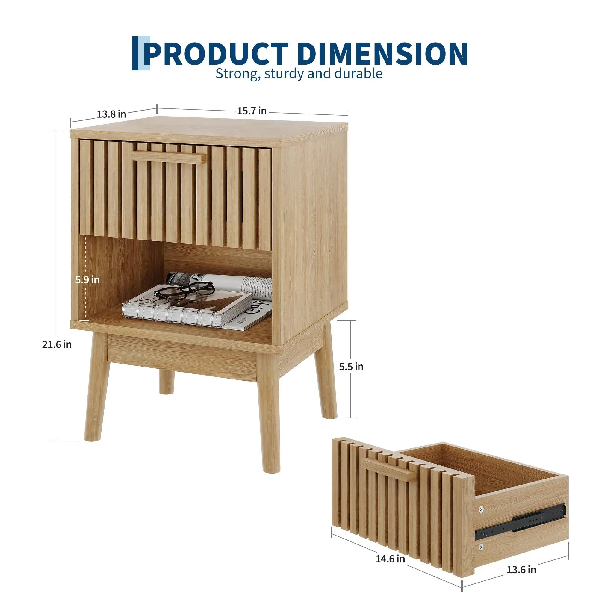 WOODEN CONSTRUCTION: Say goodbye to flimsy, easily deformed fabric drawers. The entire frame and drawer of our night stand are crafted from high-quality MDF. This ensures superior load-bearing capacity, stability, and long-lasting durability.