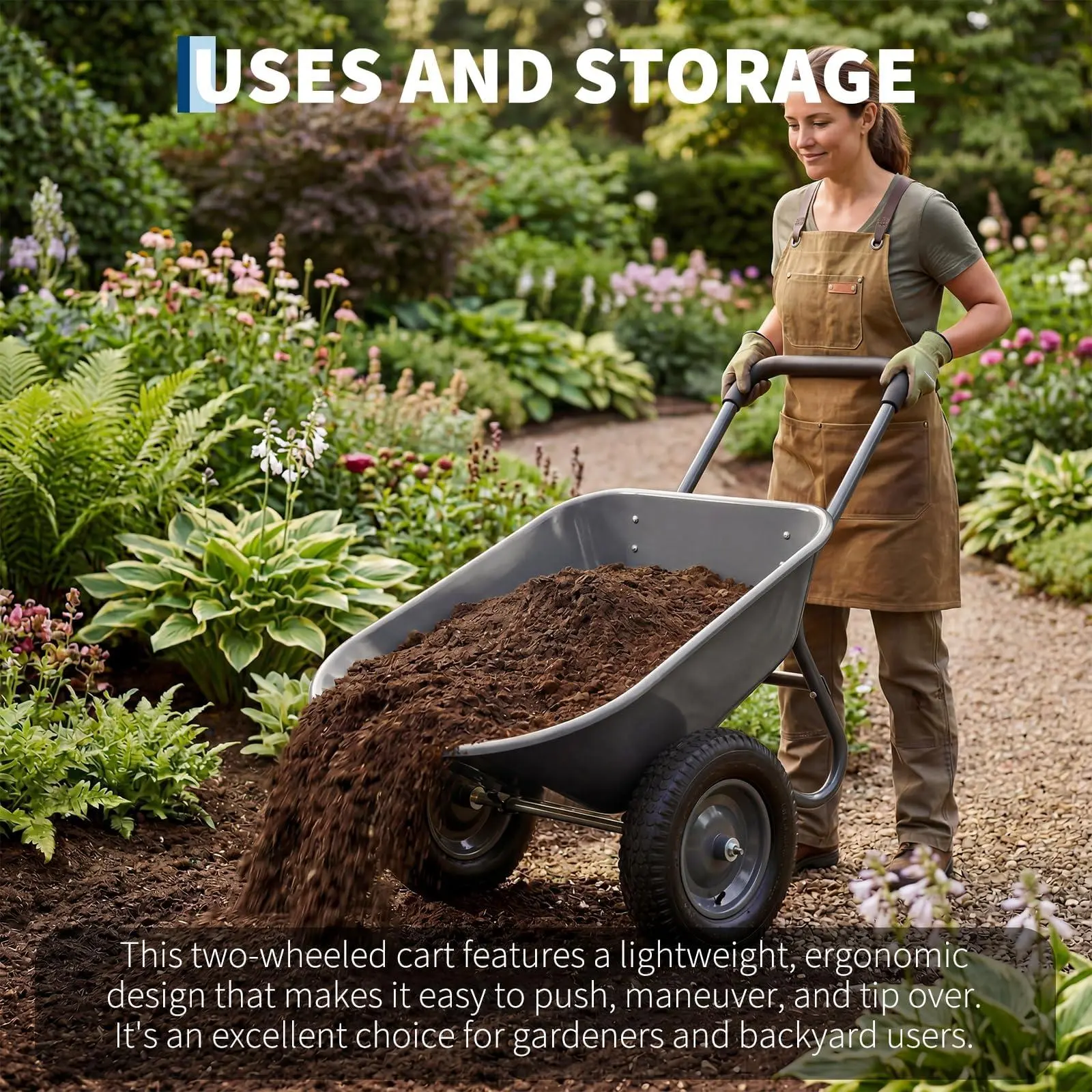 GAOMON Grey Wheelbarrow Garden Cart, Heavy Duty Home Utility, Dual-Wheel Home Garden Yard Utility Wheelbarrow Cart with Built-in Stand