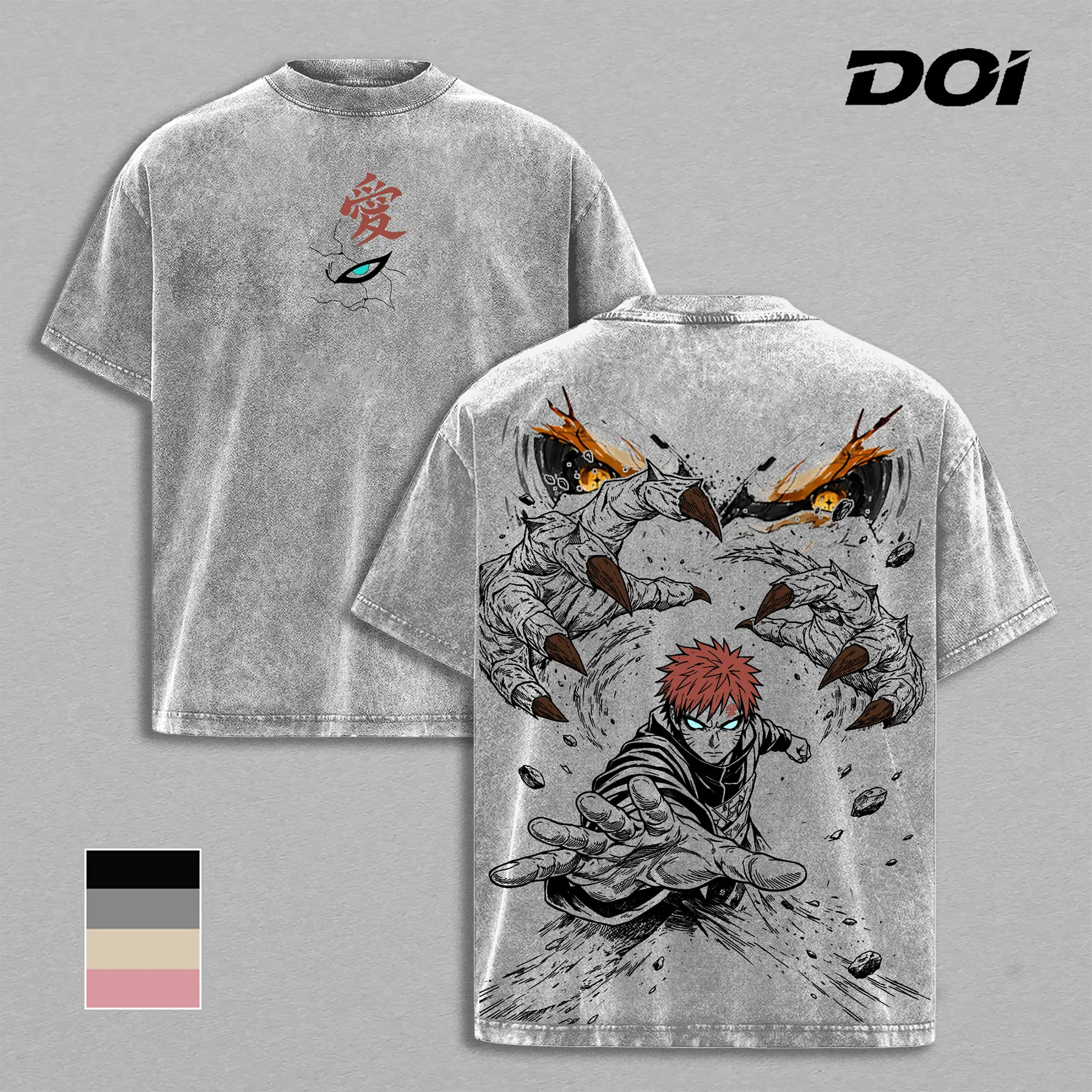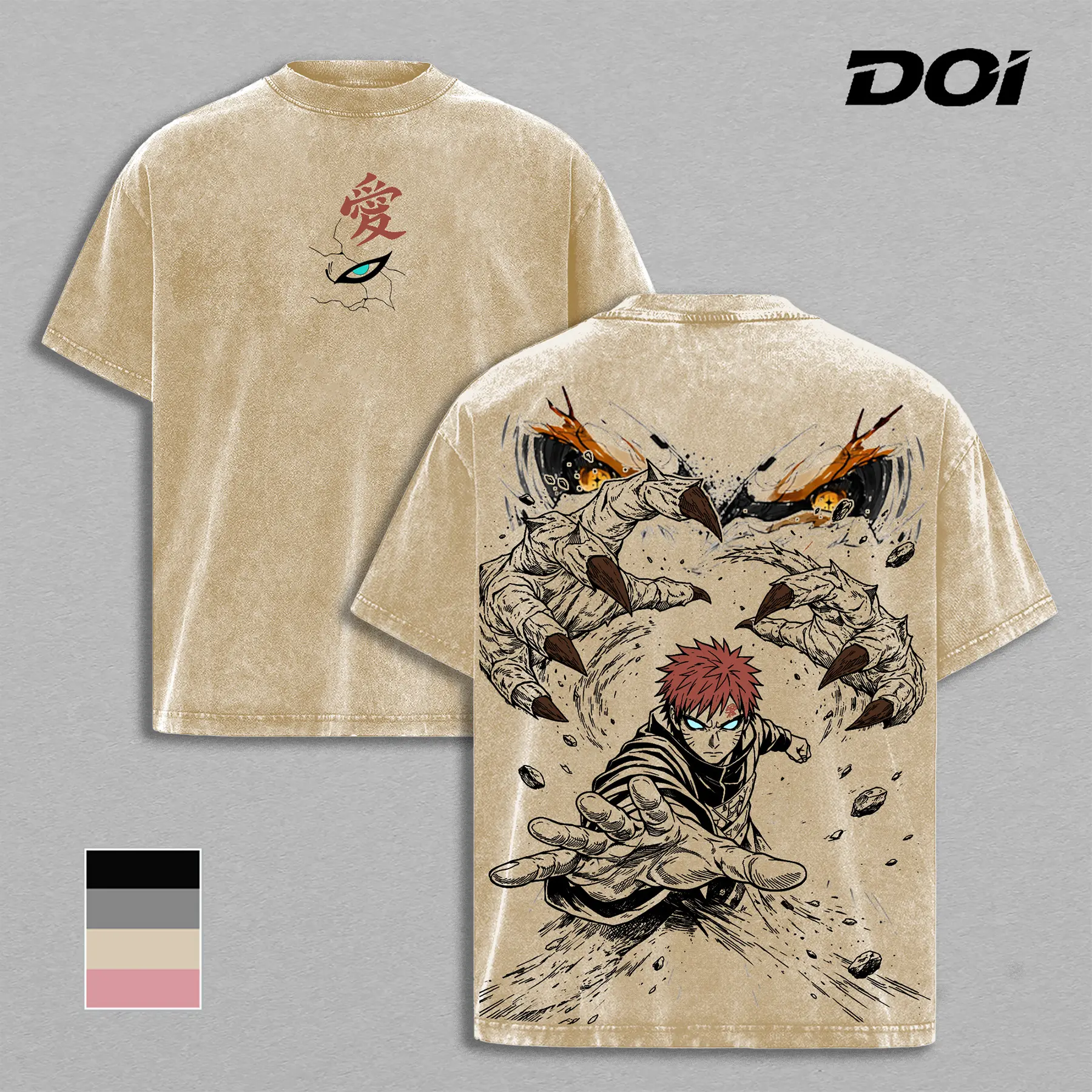 5. Gaara Sand Control Anime Graphic Tee, Naruto Shippuden Kazekage Design Shirt, Desert Power Sand Hands Illustration, Vintage Washed Dark Streetwear Style, Heavyweight Cotton Unisex T-Shirt, Gift for Naruto Fans