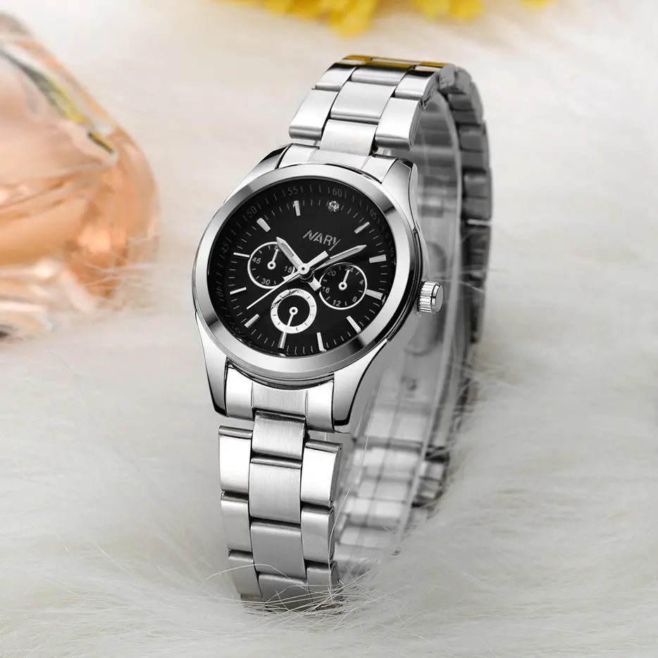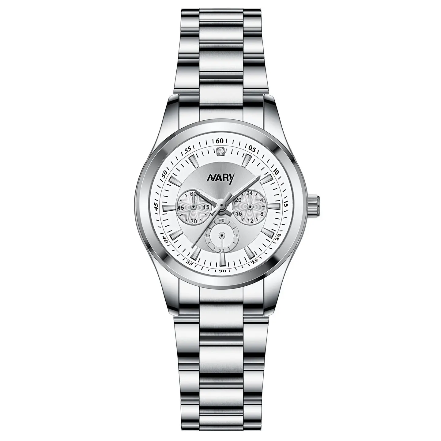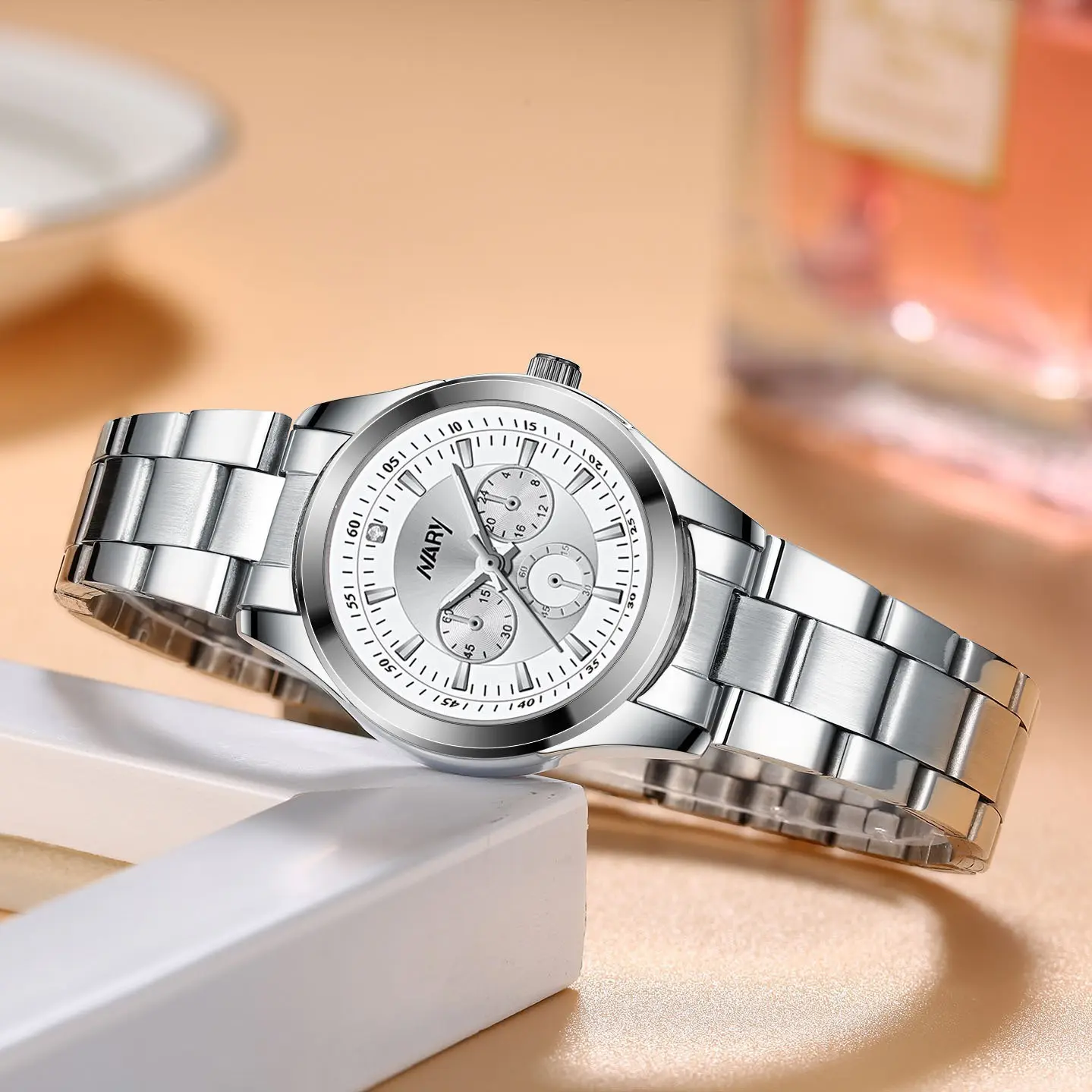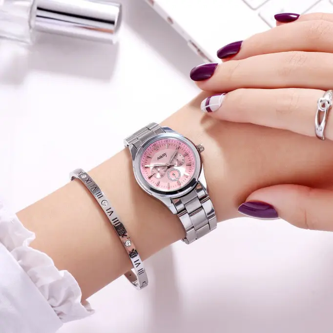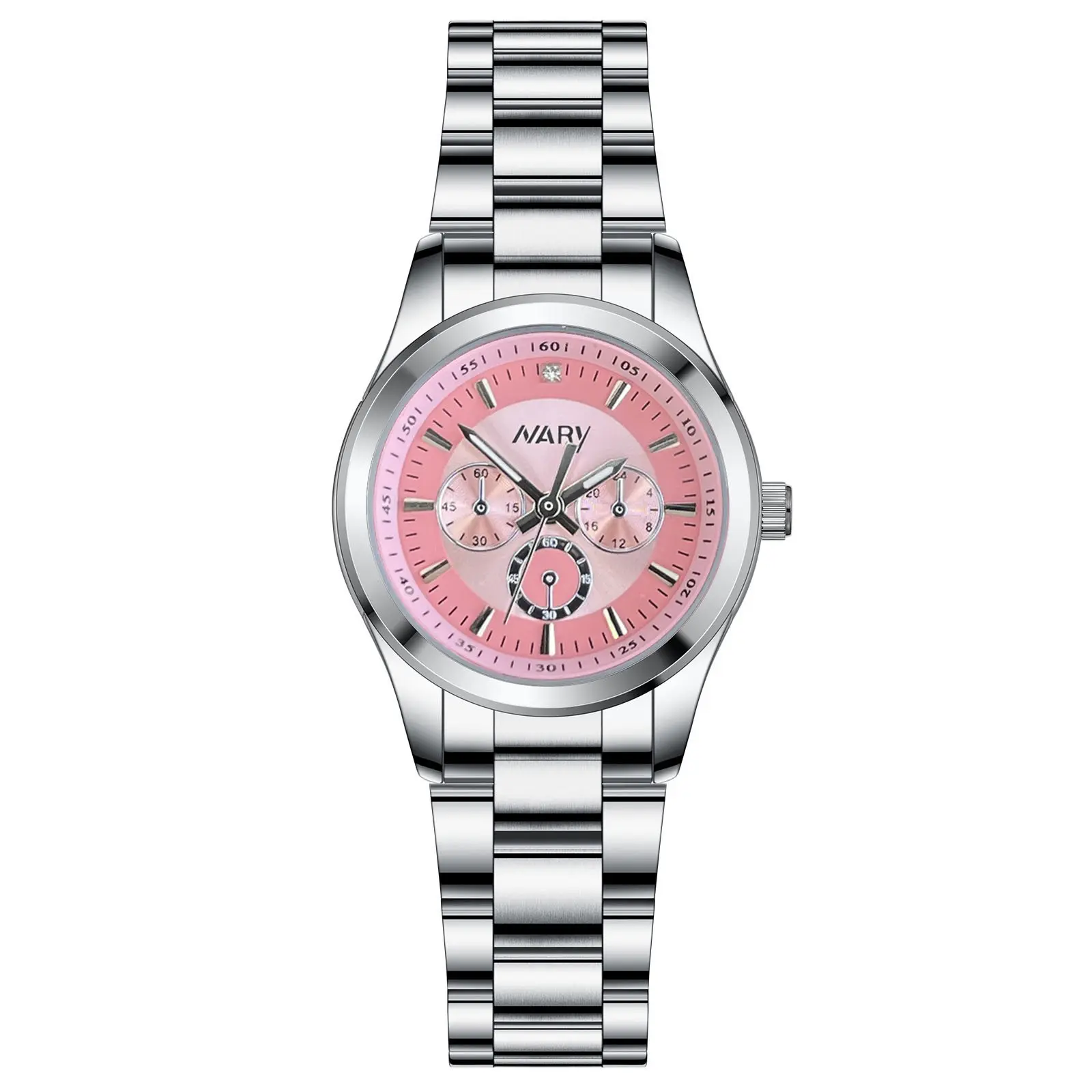 Women's Luxury Minimalist Chronograph Quartz Watch - Silver Stainless Steel Band, Pink Dial with 3 Sub-dials, Luminous Hands, Water Resistant, Elegant Casual Wristwatch, Perfect Gift for Her