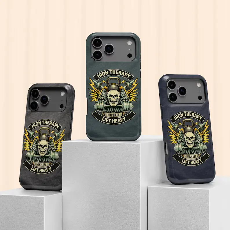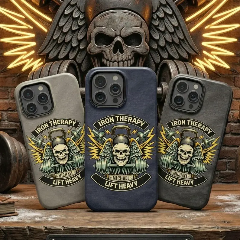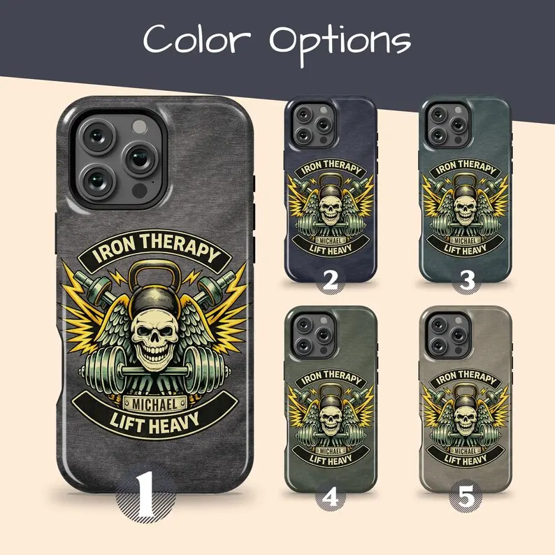 Personalized Iron Therapy iPhone 17 Air Case, Gym Fitness Strength Name Case for iPhone 16 Pro Max, 15 Plus, 14, 13 Mini, 12