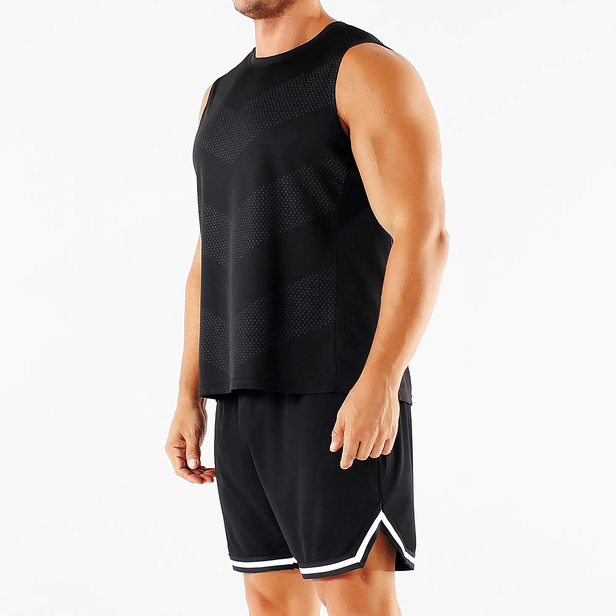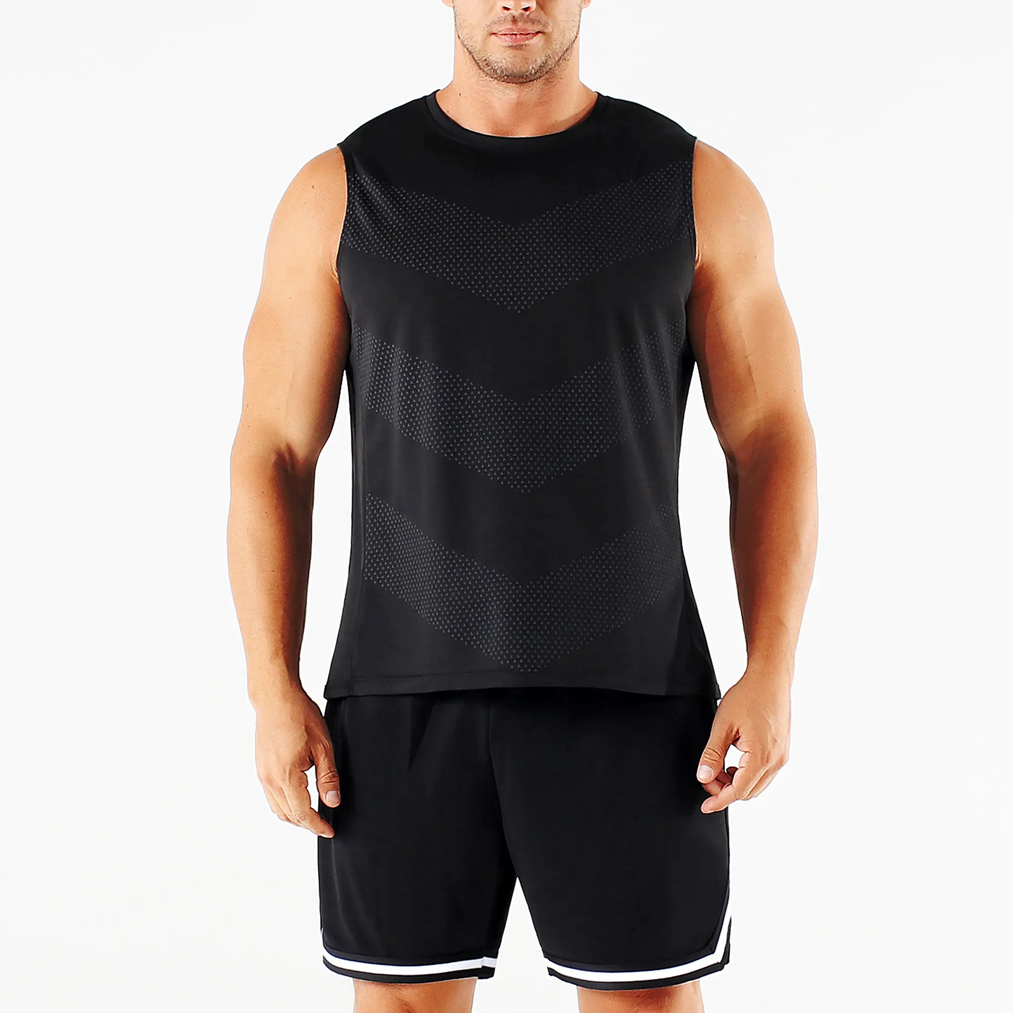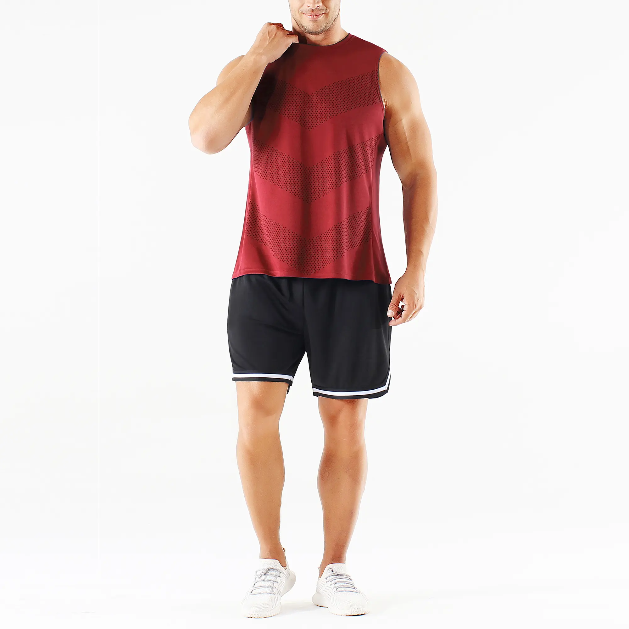 Smart Design Features: Classic crew neck for a comfortable fit, sleeveless/cut sleeve design to maximize arm mobility—ideal for basketball, boxing, or any high-energy activity. The Chevron print with mesh paneling adds a stylish, athletic edge while enhancing airflow.