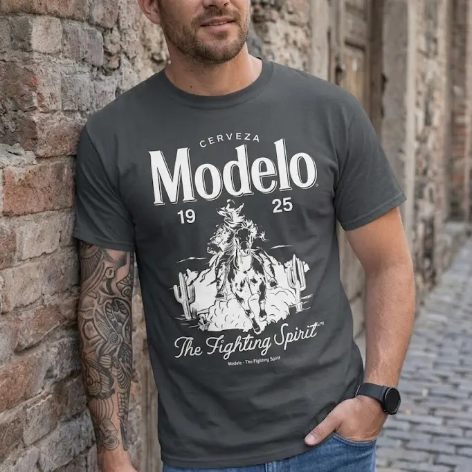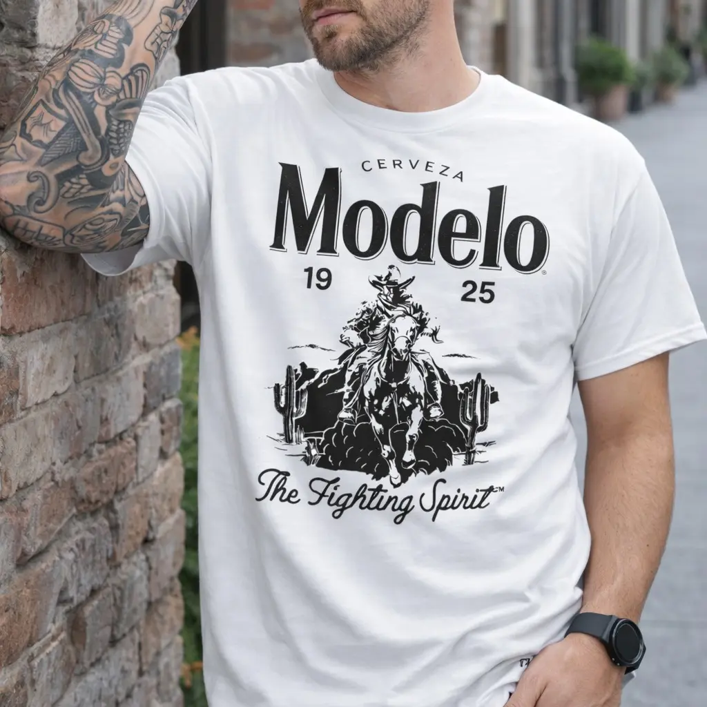 Vintage Modelo “The Fighting Spirit” T-Shirt – Cerveza 1925 Graphic Tee, Classic Western Beer Style Top