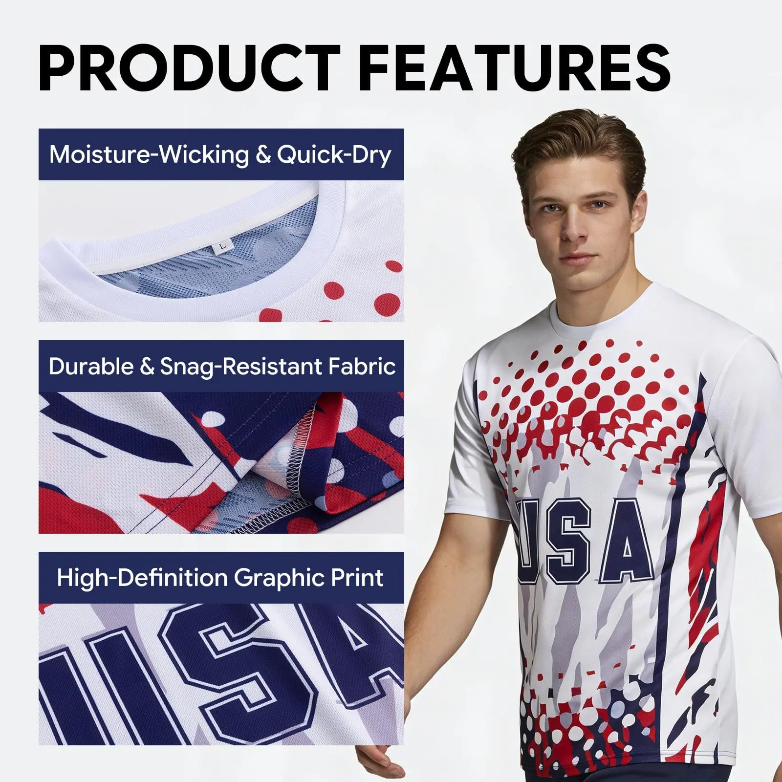 ·DEFEND THE HOME SOIL: Step into the 2026 international football games as the proud primary host nation with our premium USA fan jersey. Featuring an exclusive, high-definition "Host Nation" graphic seamlessly integrated into the iconic red, white, and blue colors for a standout streetwear look.