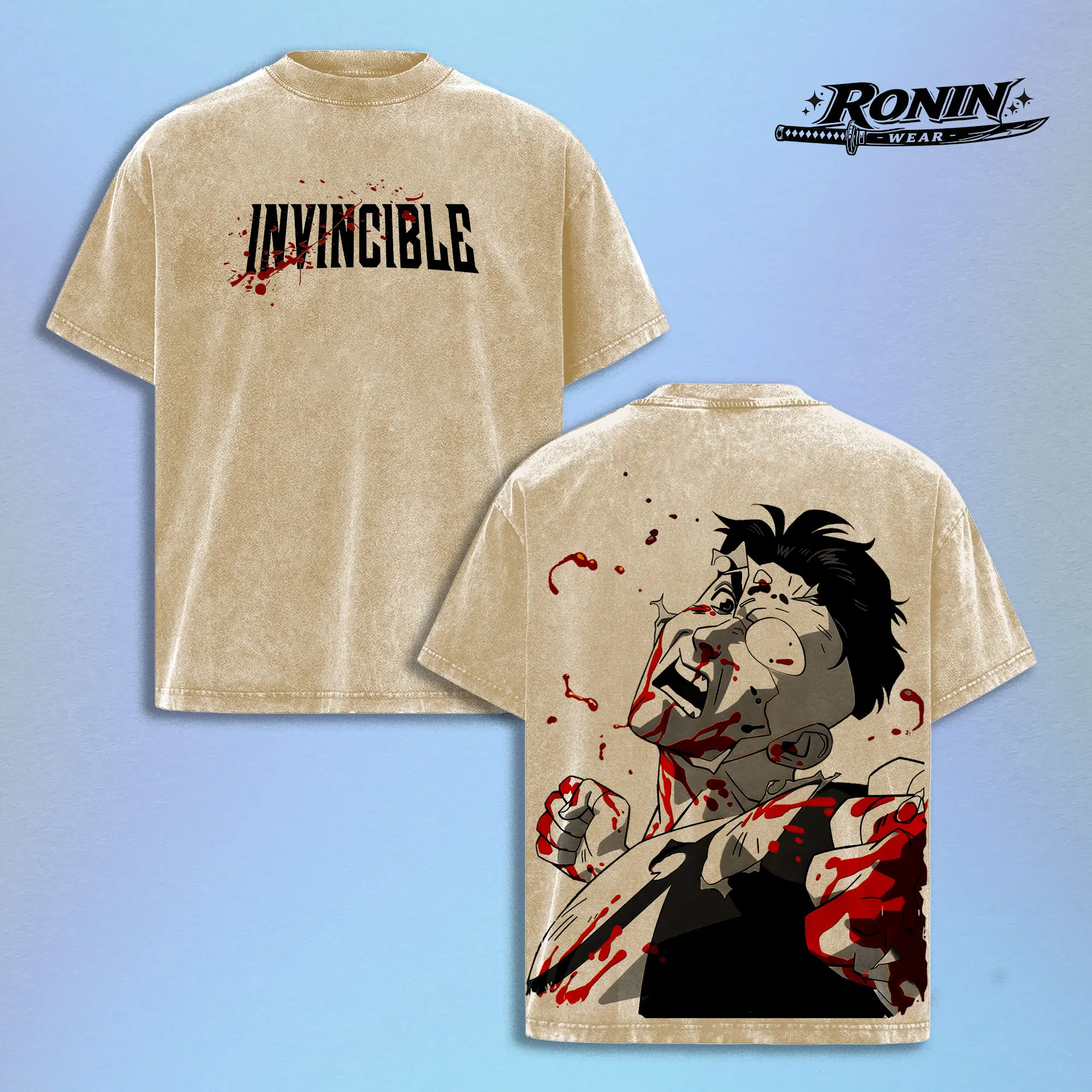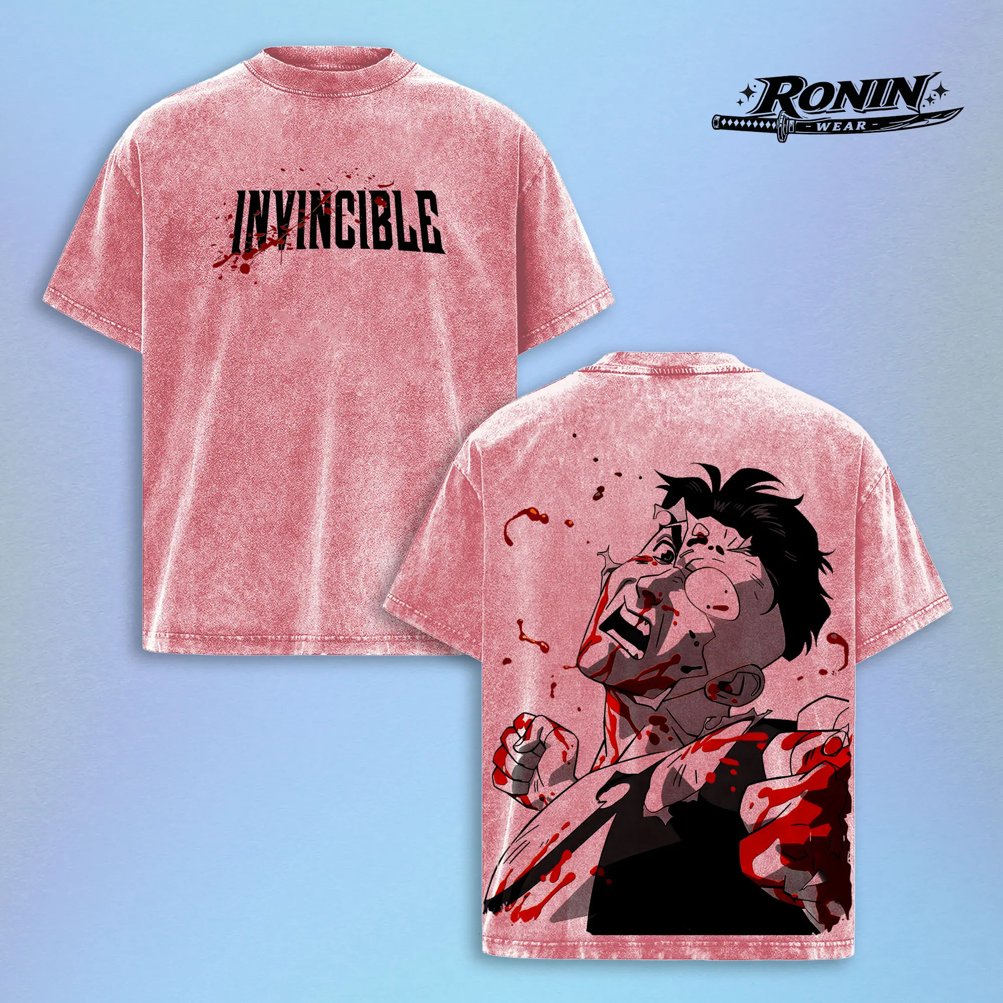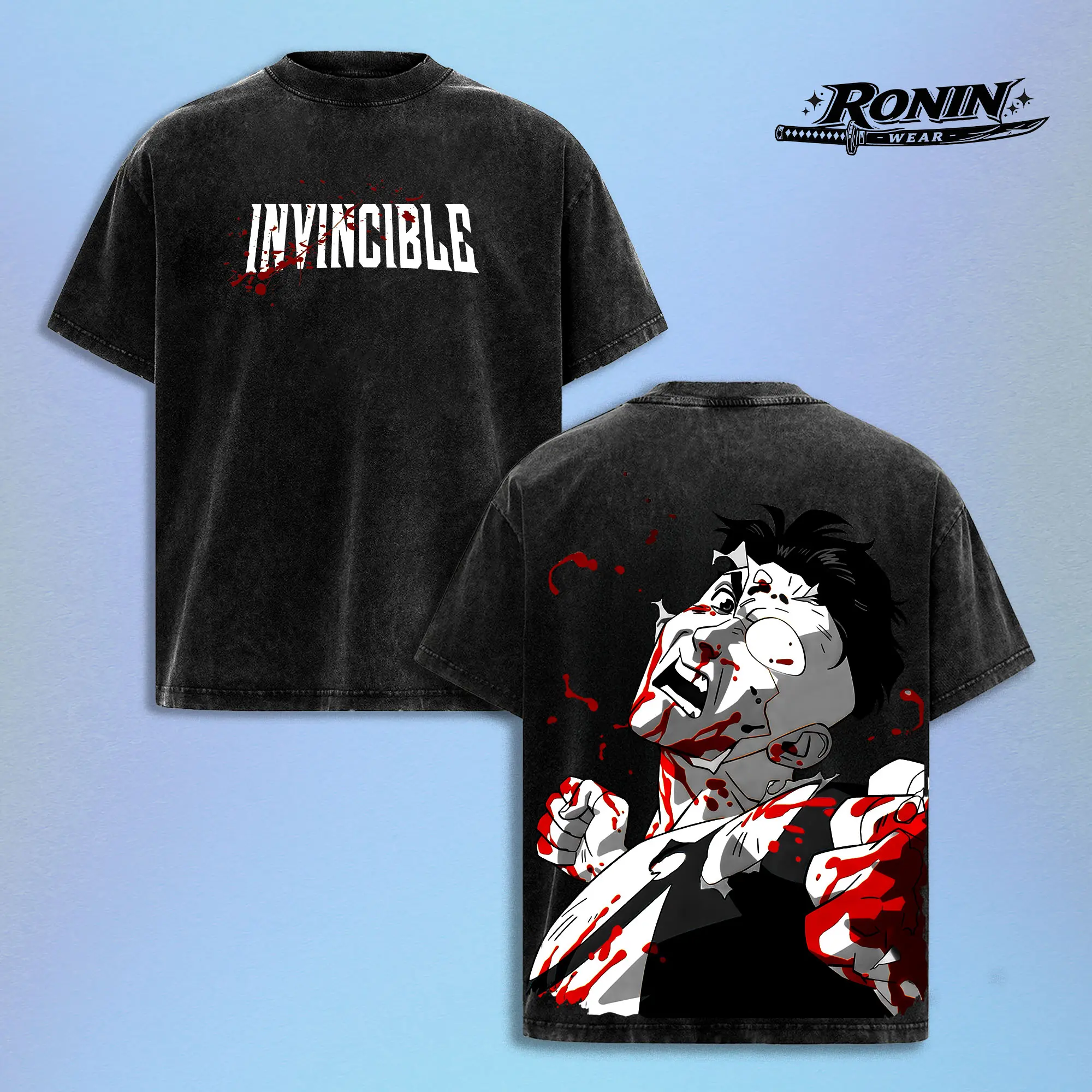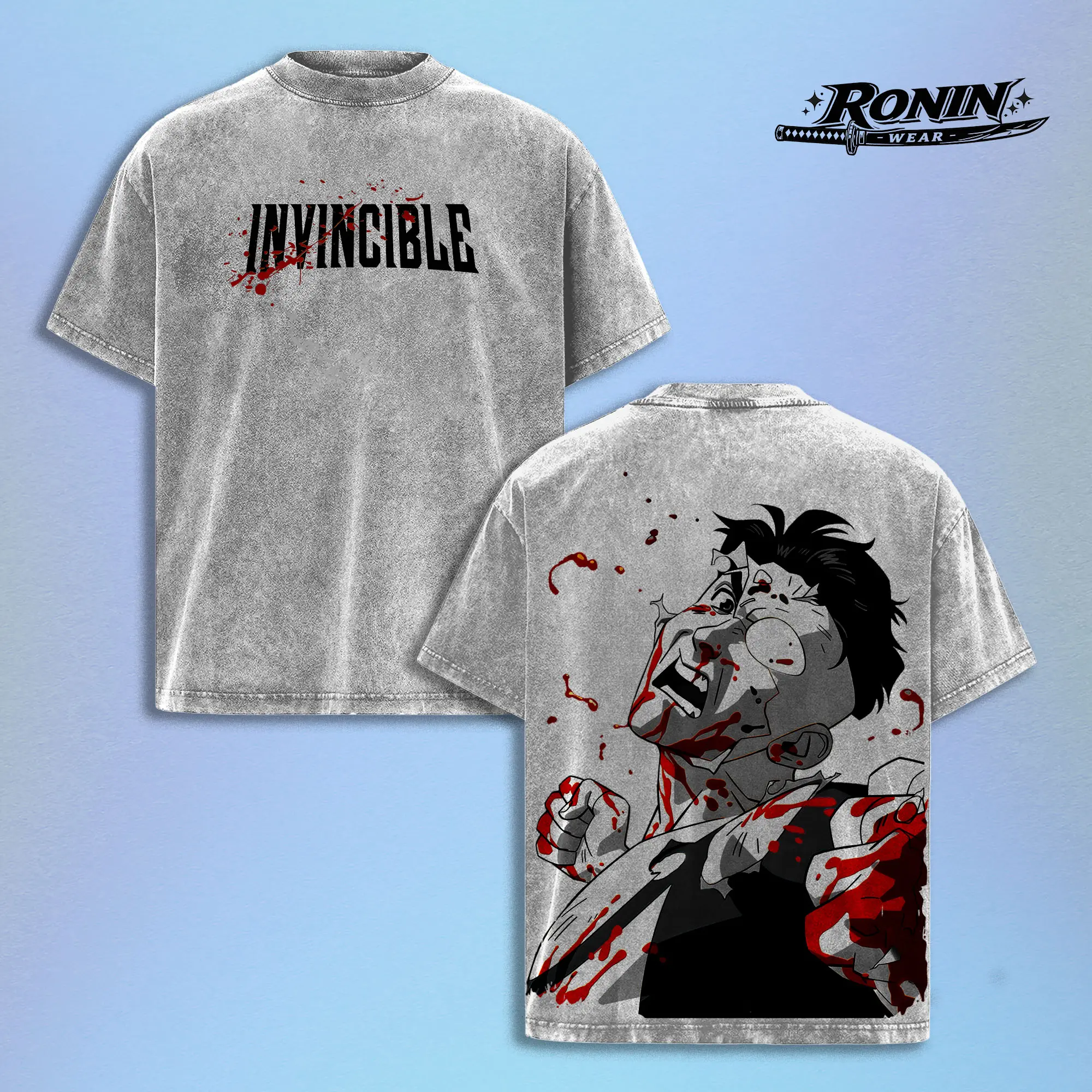 Invincible Anime Shirt Vintage Washed Oversized Streetwear Tee Blood Graphic T Shirt Dark Aesthetic Y2K Grunge Manga Anime Inspired Harajuku Outfit Unisex Men Women