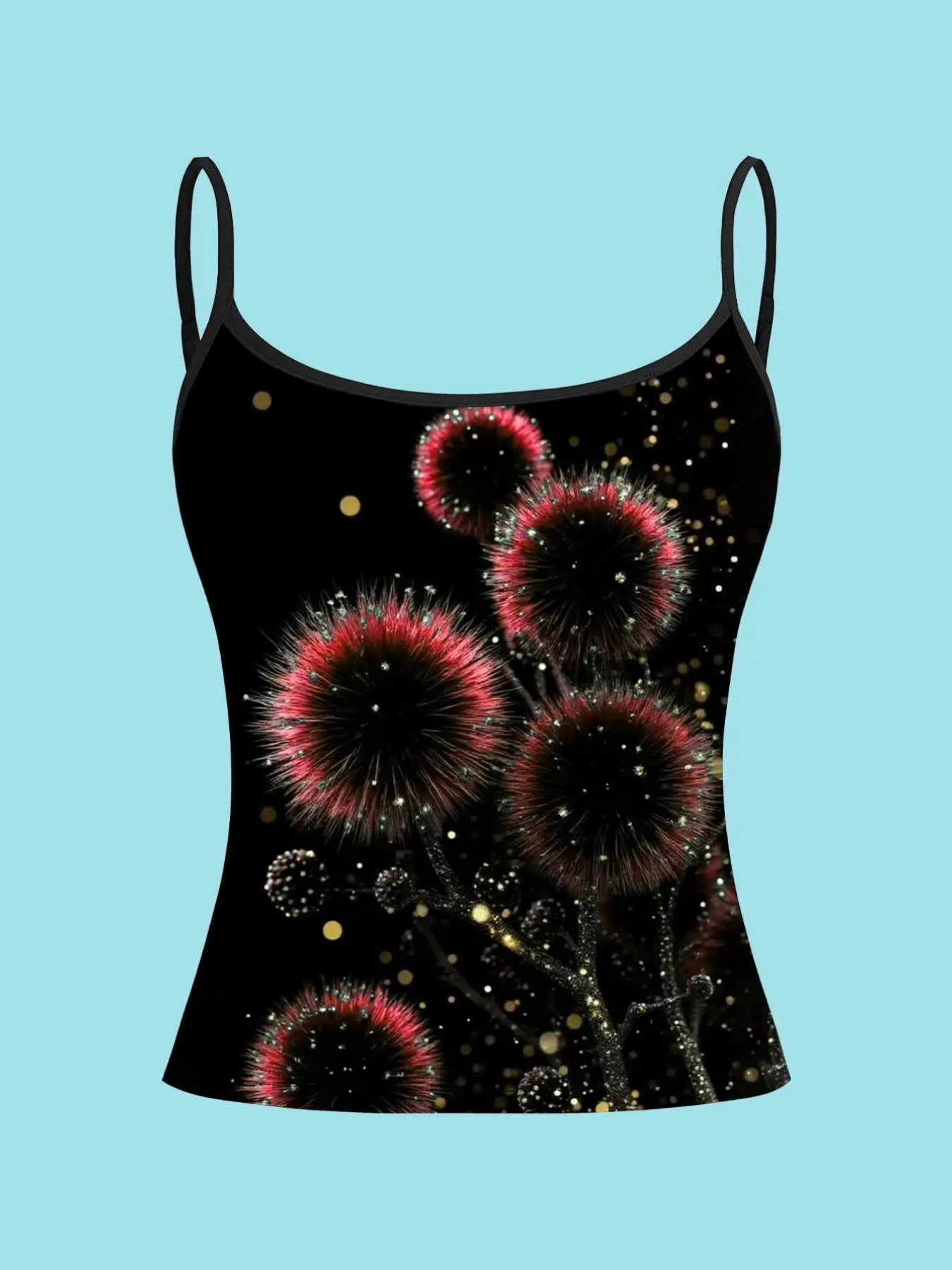 5. Neon Fluorescent Floral Print Strappy Top, Cyberpunk Slim-Fitting Shirt, 4-Piece Set, Casual Style, All over Print, Fashionable Clothing
