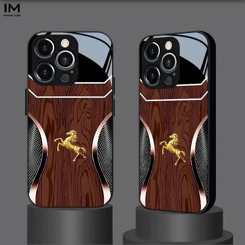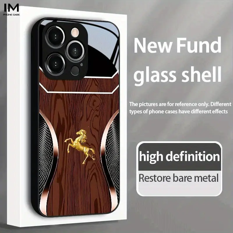 Brown background with golden horse pattern, fashionable and trendy, high-quality texture, good feel, business style, popular design, suitable for iPhone 17 16 15 14 13 12 11 pro max phone cases