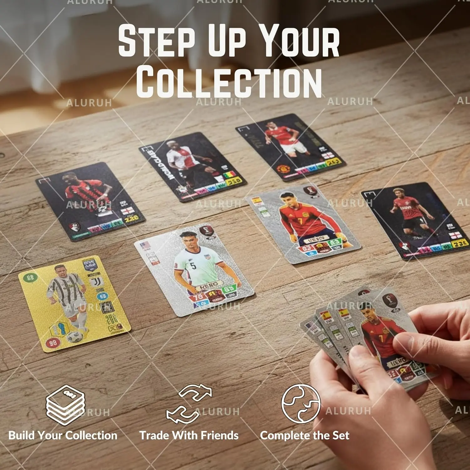 Soccer Trading Cards 2024-2025, 55PCS World Cup Soccer Cards Shimmering Gold, Durable Football Cards for Fans and Players, Not Original (Colorful)