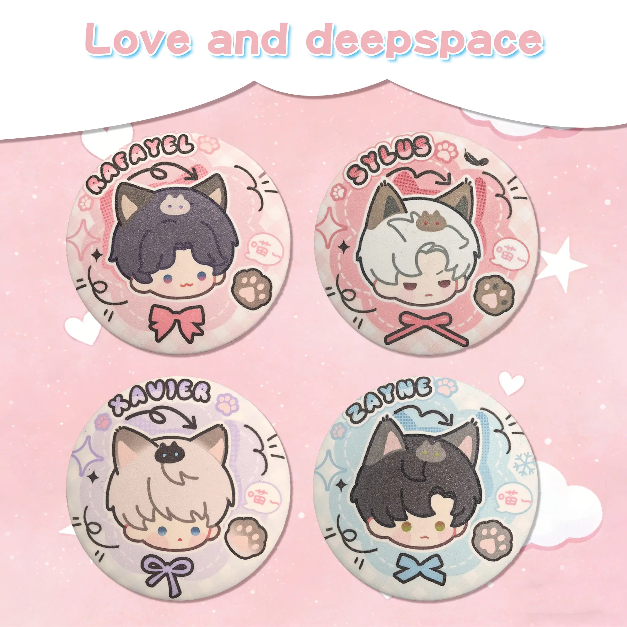 Love and Deepspace cat ear badges: Sylus Zayne Xavier Rafayel Caleb