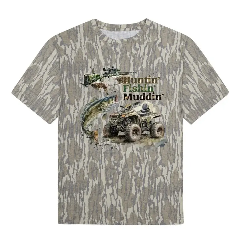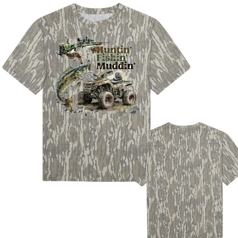 Huntin Fishin Muddin Outdoor Graphic Tee | bottomland shirt Mossy Oak Wash Camo Tee, Mossy Oak gift for dad 2026, Camo 3D T Shirt