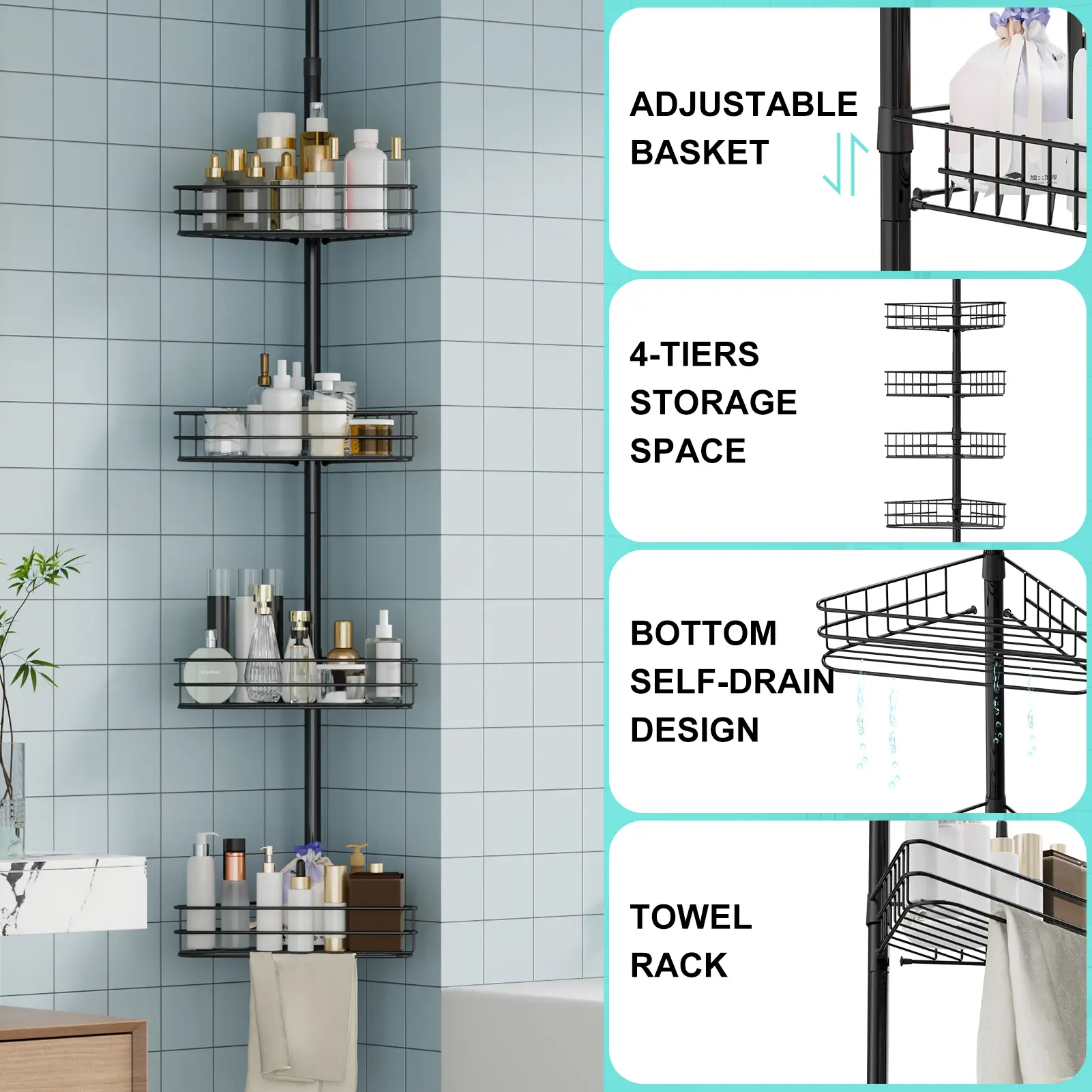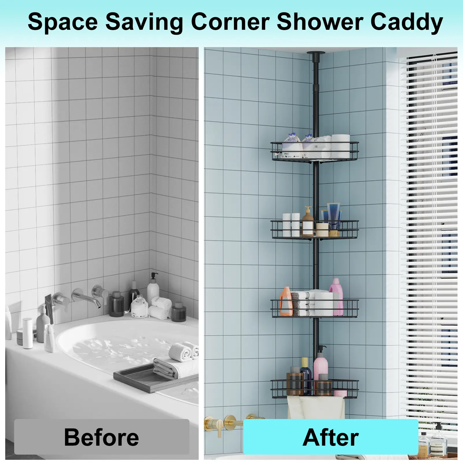 ·Multi-Tier Organized Storage: Four generously sized shelves provide dedicated space for all family members' toiletries, helping maintain a clutter-free shower environment while improving bathroom aesthetics