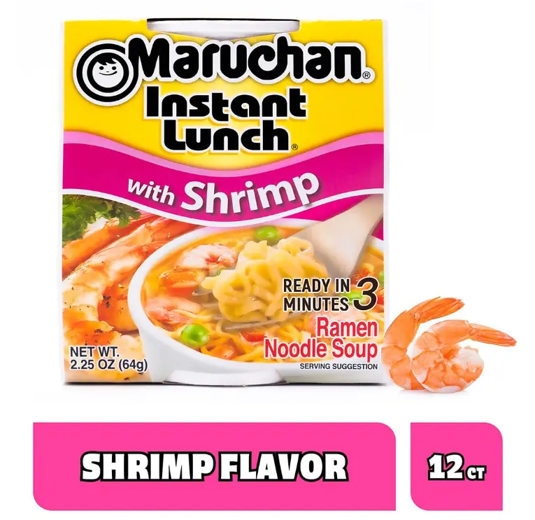 Enjoy a quick and flavorful meal with Maruchan Instant Lunch Shrimp Flavor Ramen. Featuring tender noodles, savory shrimp broth, and vegetables, this easy-to-make cup is perfect for busy days—just add hot water and enjoy anytime, anywhere.