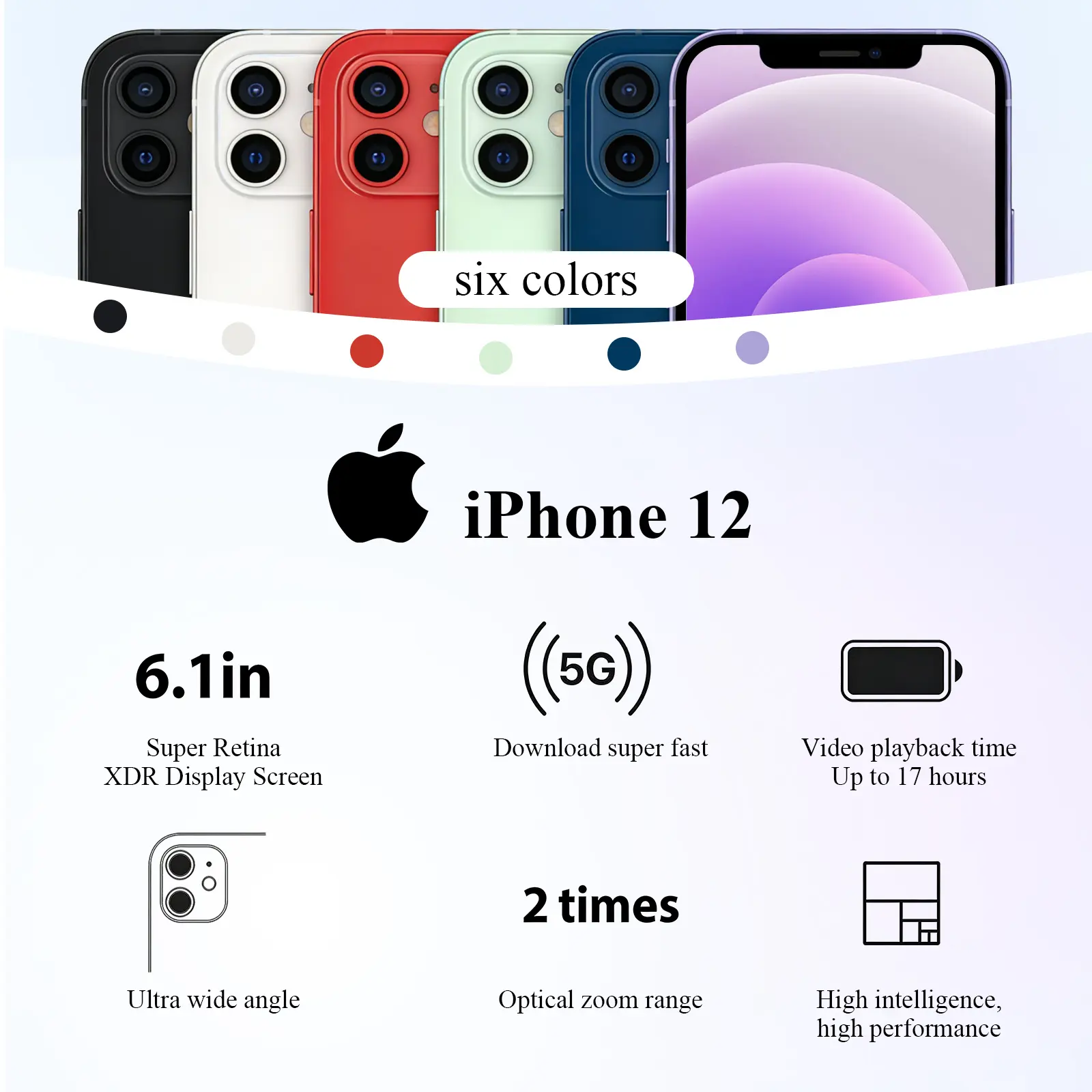 Refurbished iPhone 12 128GB Purple (Unlocked) - Excellent condition, 6.1″ display, supports any carriers, like-new performance, 1-Year Warranty by JunQ Trading