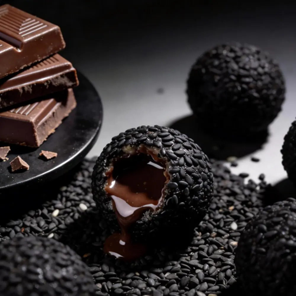 Each sesame ball contains a crispy wafer layer, delivering a luscious chocolate centre in every bite.