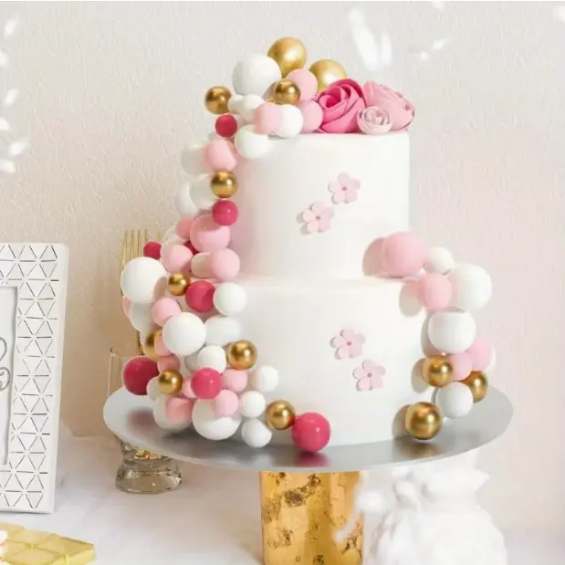 ·Package includes: 32 pcs balls cake decorations with different colors and Sizes. They are gold, white, pink, hot pink colors as picture showed, 8 pieces of each color.