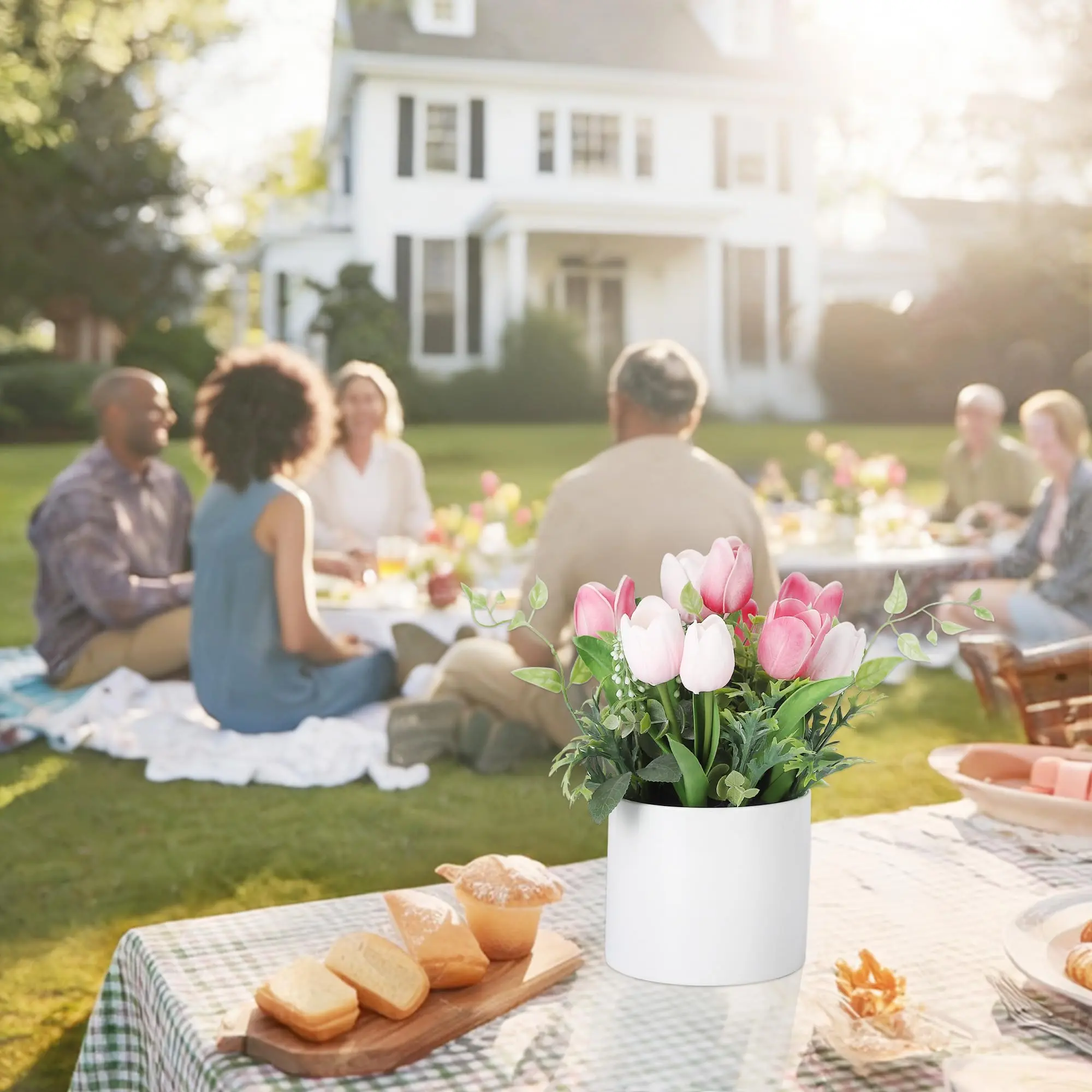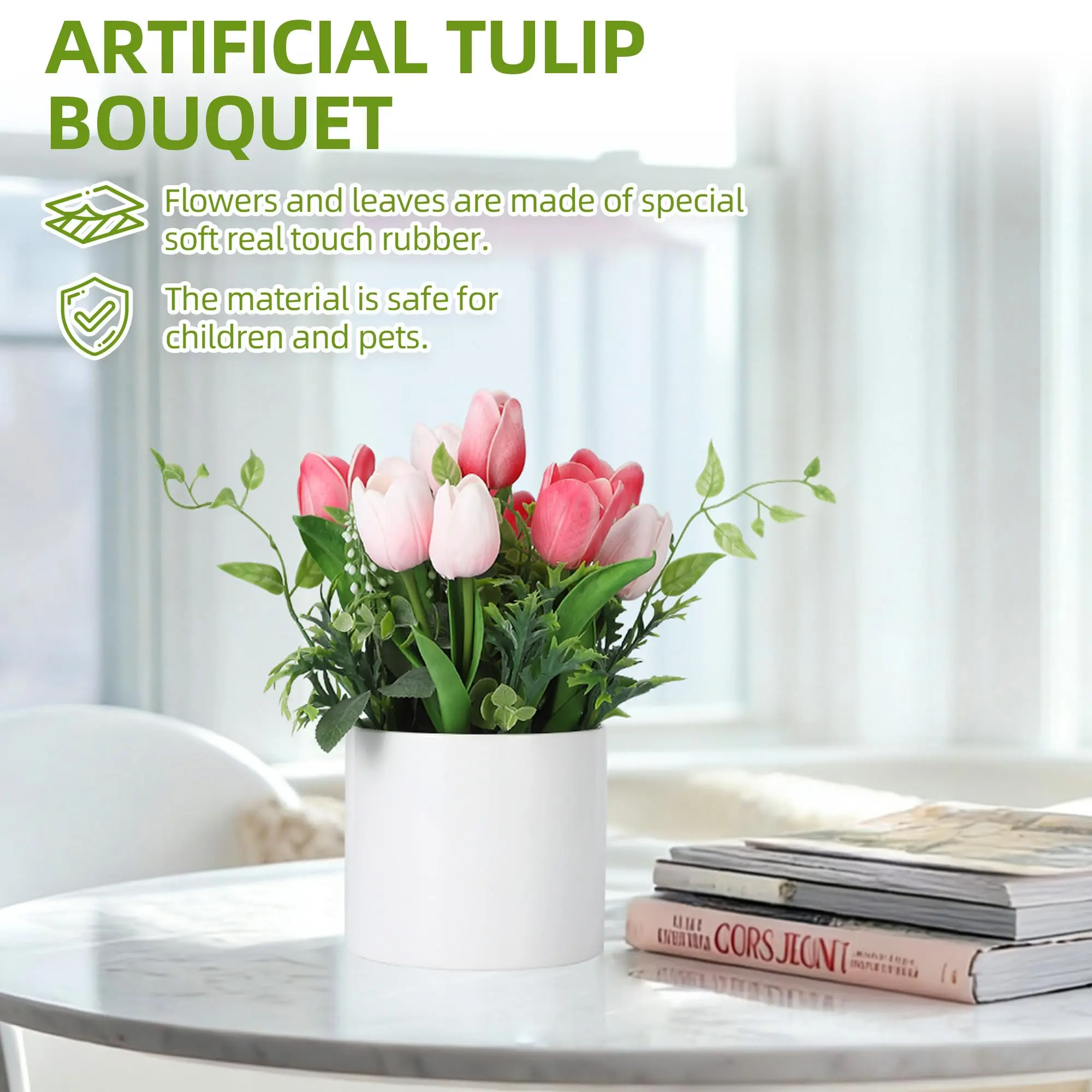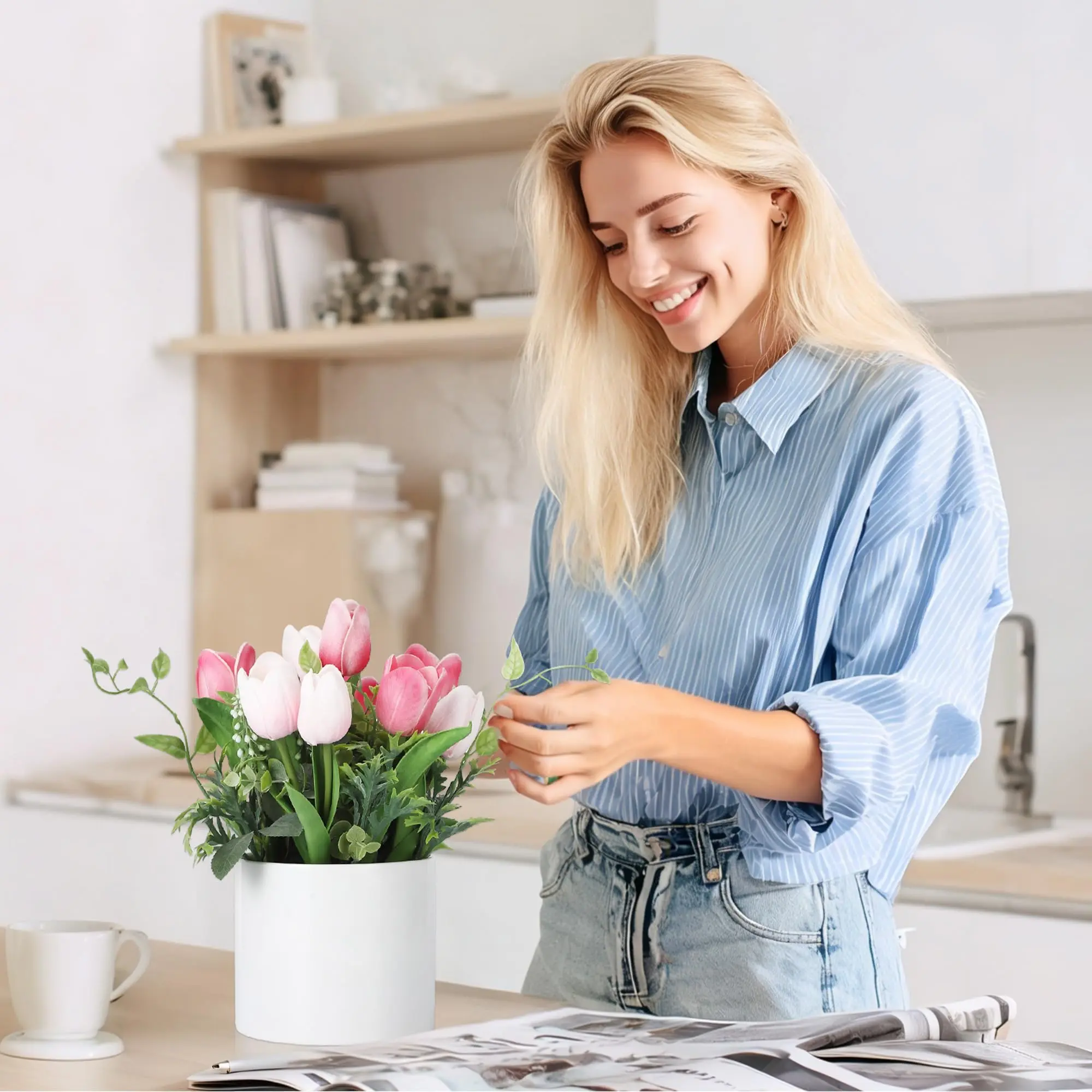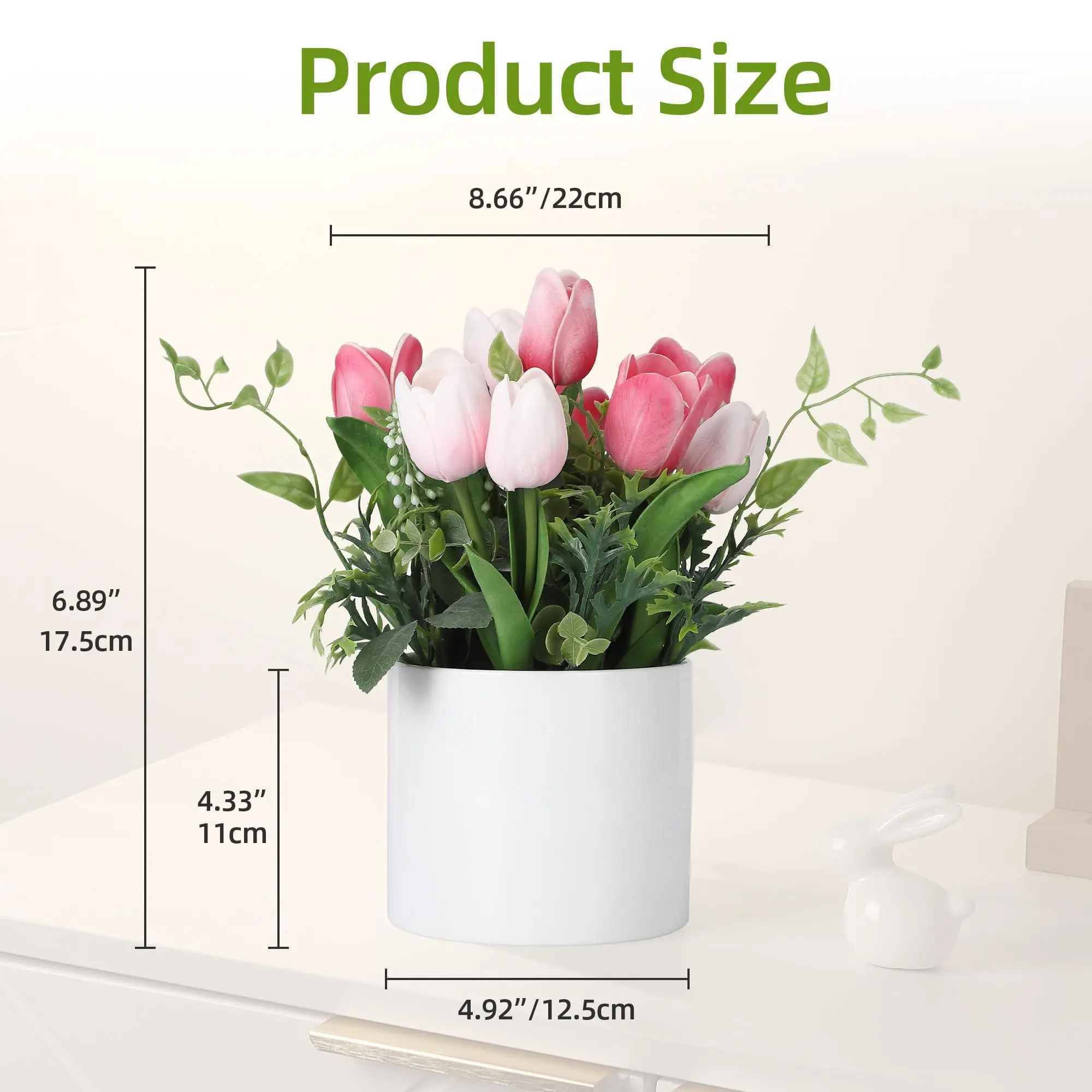· VERSATILE HOME & EVENT DECOR:Measuring approximatelywidth 8.66 inches × height 6.89 inches, this arrangement fits perfectly on dining tables, office desks, kitchen counters, bookshelves, and bathroom vanities. Its clean white style complements modern, farmhouse, minimalist, and classic interiors alike.