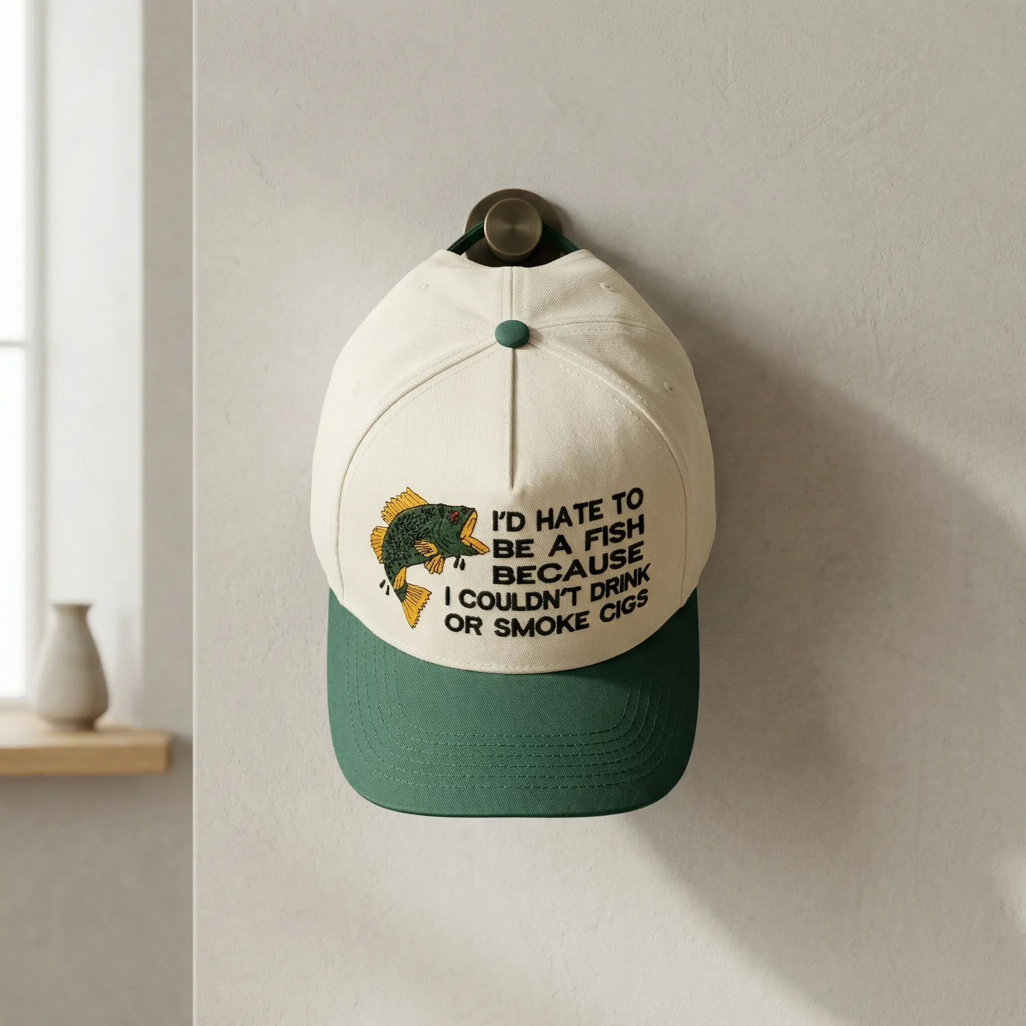 Fishing Gag Hat – “I’d Hate to Be a Fish” Embroidered Dad Cap, Funny Fisherman Gift, Outdoor Humor Hat