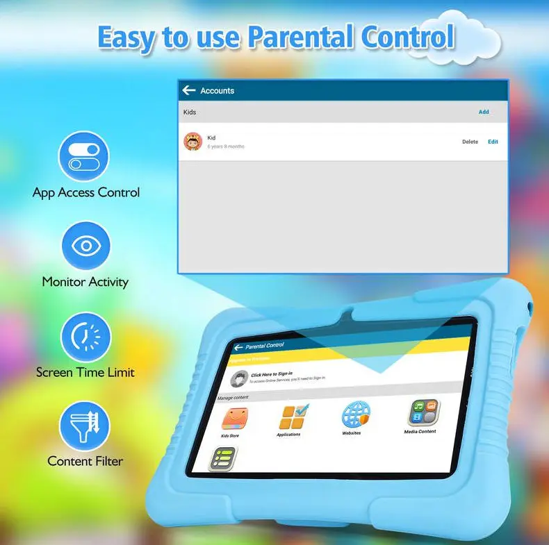 Ideal for Holidays This children's tablet is a perfect holiday gift. The silicone case adds an extra layer of protection. It's designed for young users, making it easy and safe for them to use. The tablet's features, including the IWAWA app, make it a fun and educational toy.