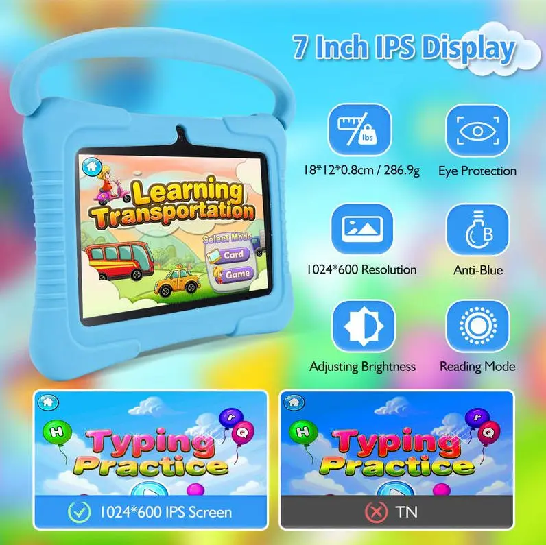Ideal for Toddlers This 7-inch Android tablet is perfect for toddlers. It comes with the IWAWA app, making it a great learning tool. The tablet features a 32GB storage capacity and WiFi connectivity. It includes a silicone case, ensuring it's anti-drop and safe for children.
