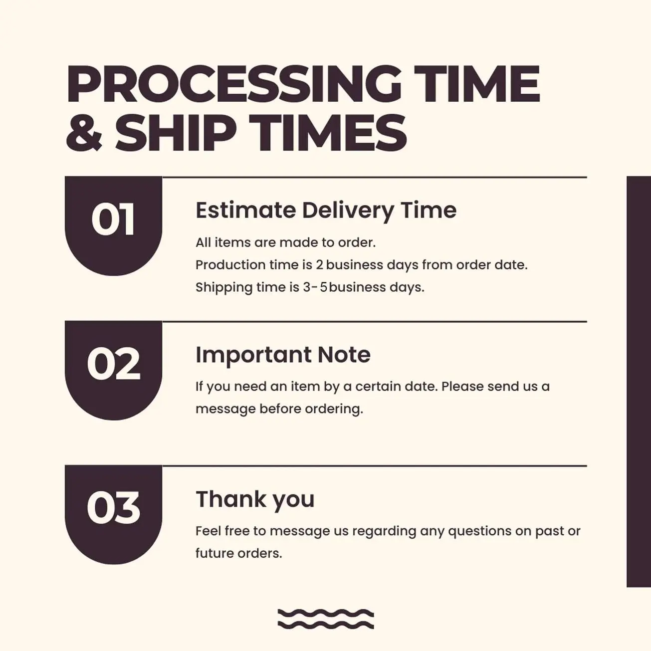 ·Peak times may cause delays; check our Shop Announcement for updates.